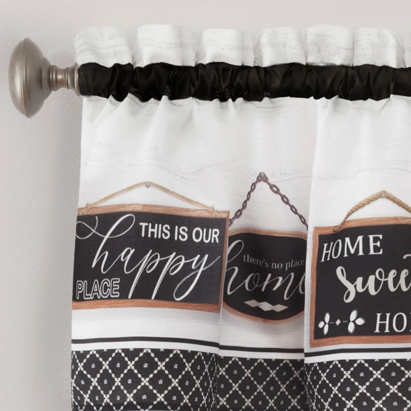 - Valance measures 58 inches by 13 inches