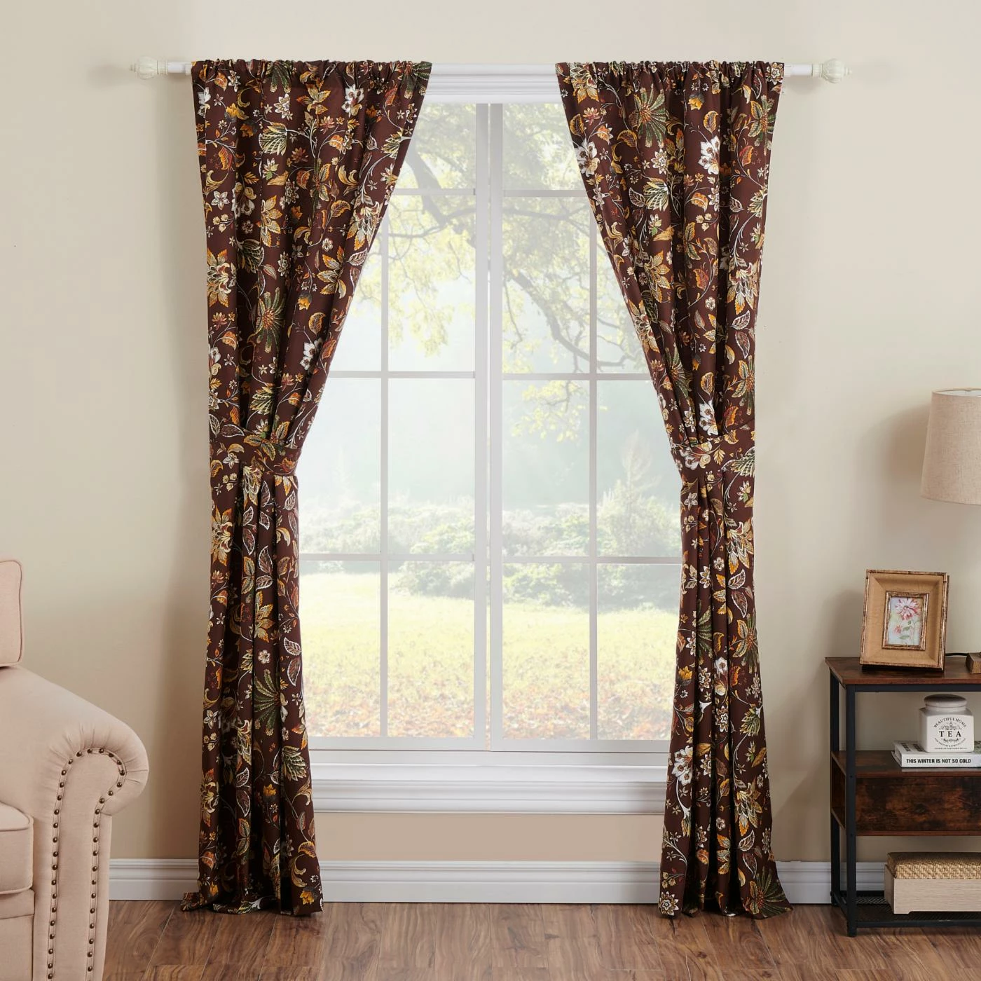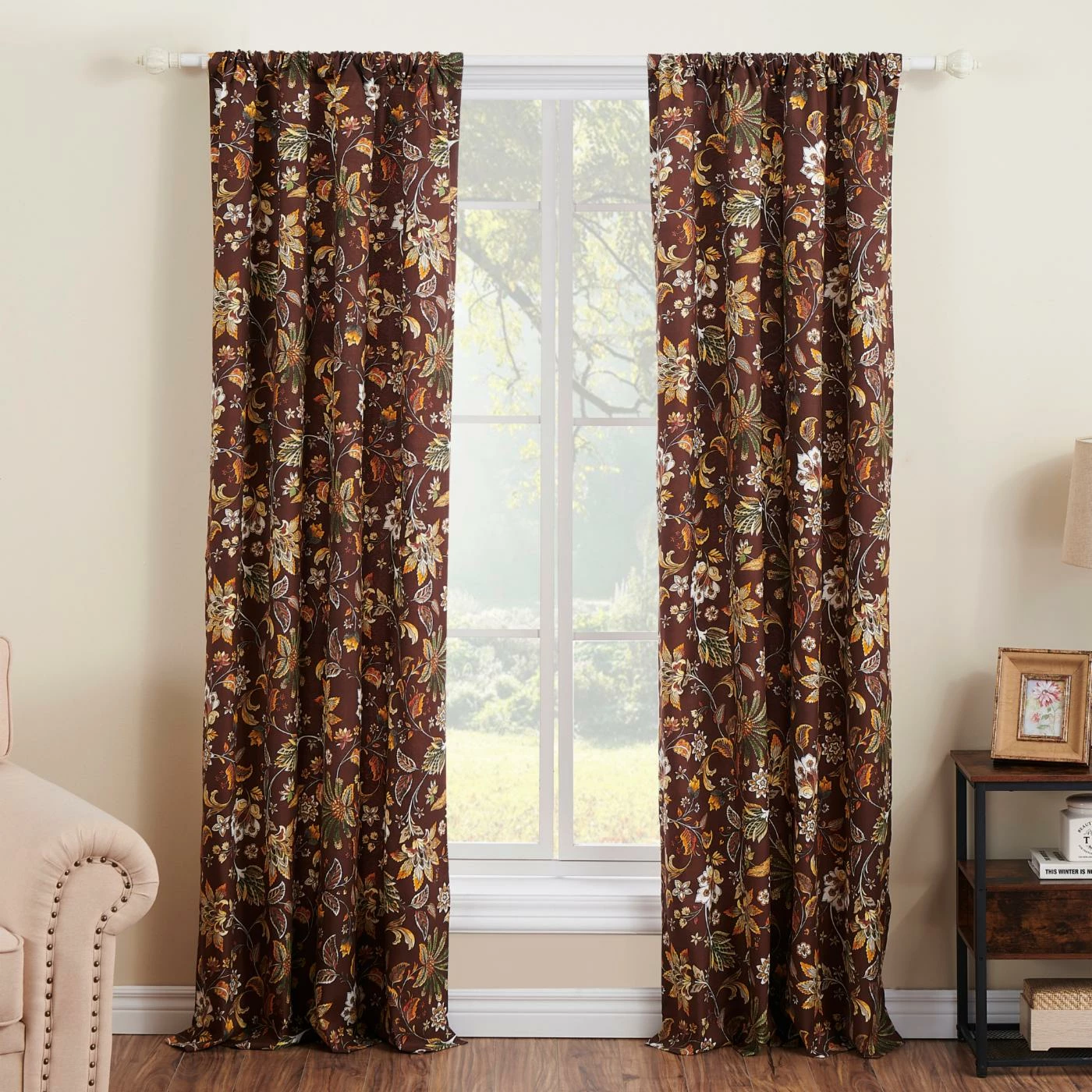 - Jacobean fern and floral on chocolate ground
