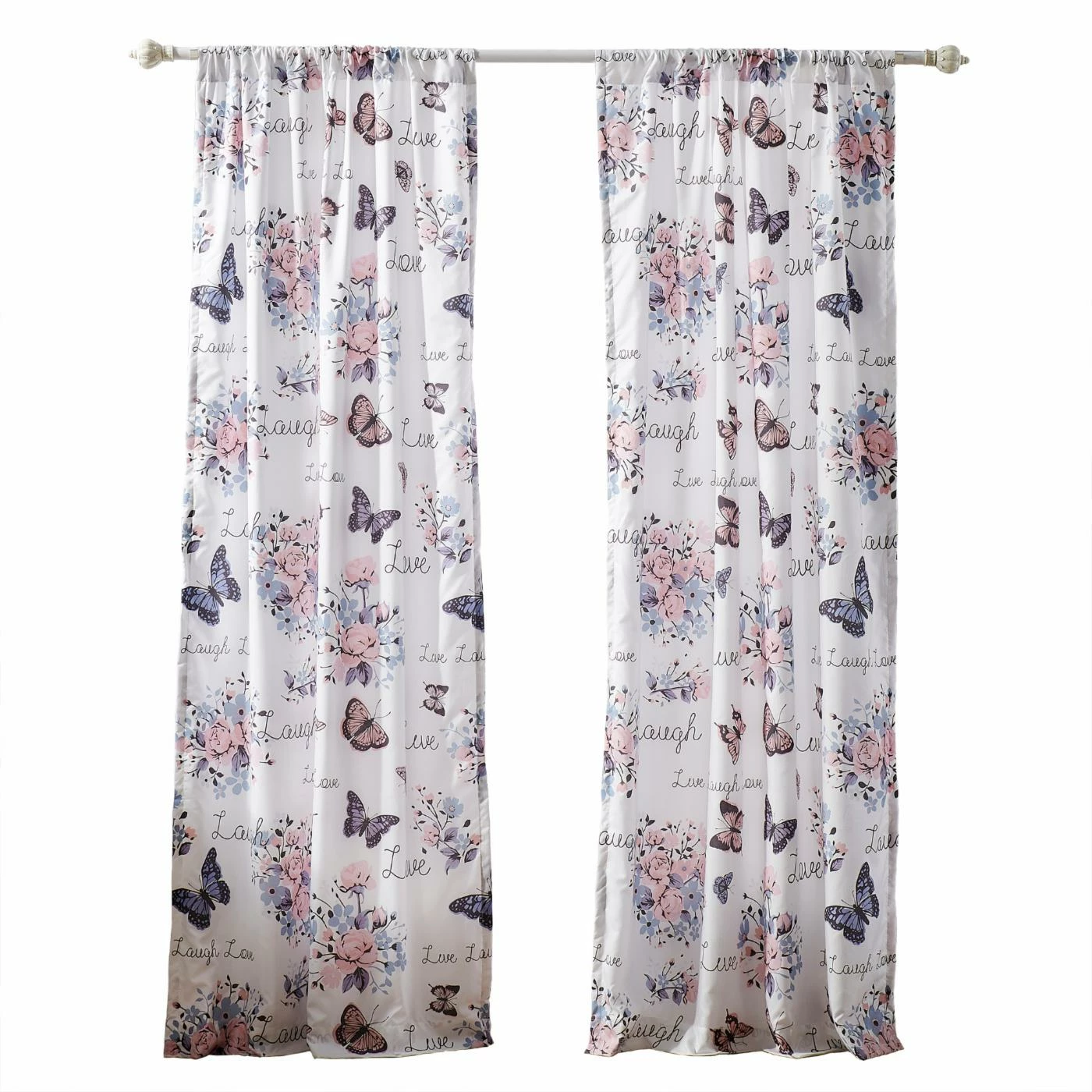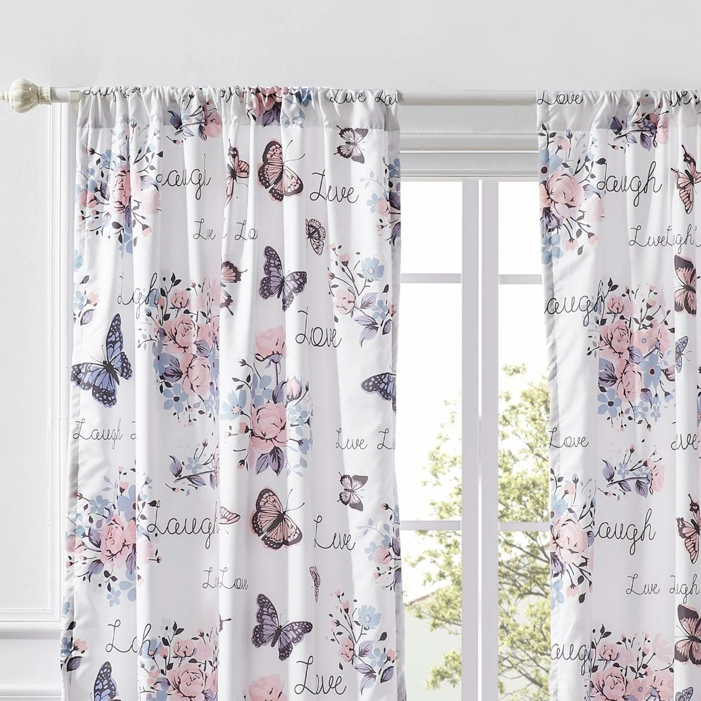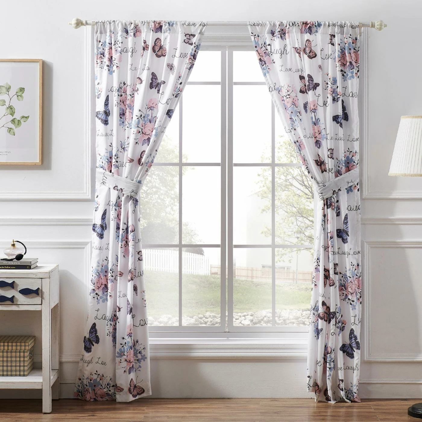 - Butterflies and floral print on white base