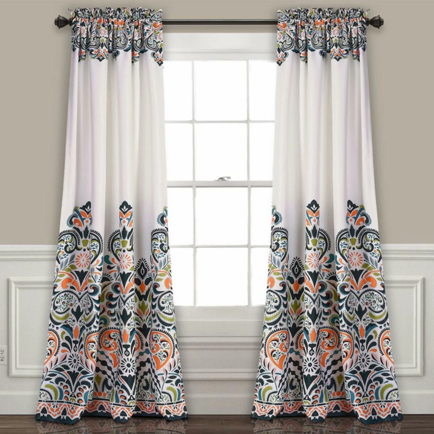 For a new look you’ll love, look no further than the Lush Decor Clara Room Darkening Curtain Set. Featuring two room-darkening panels with a multicolor damask pattern, these curtains come in your choice of available color combinations. Made with 100% polyester, these curtains boast a rod-pocket design for easy installation. Machine wash for easy care.