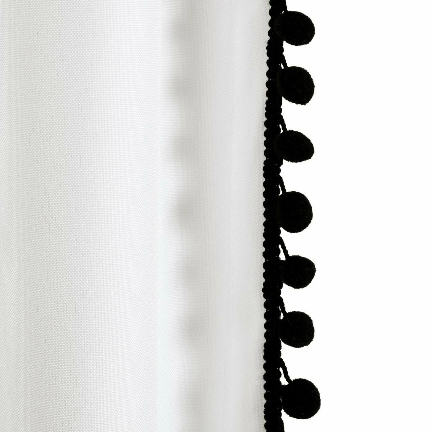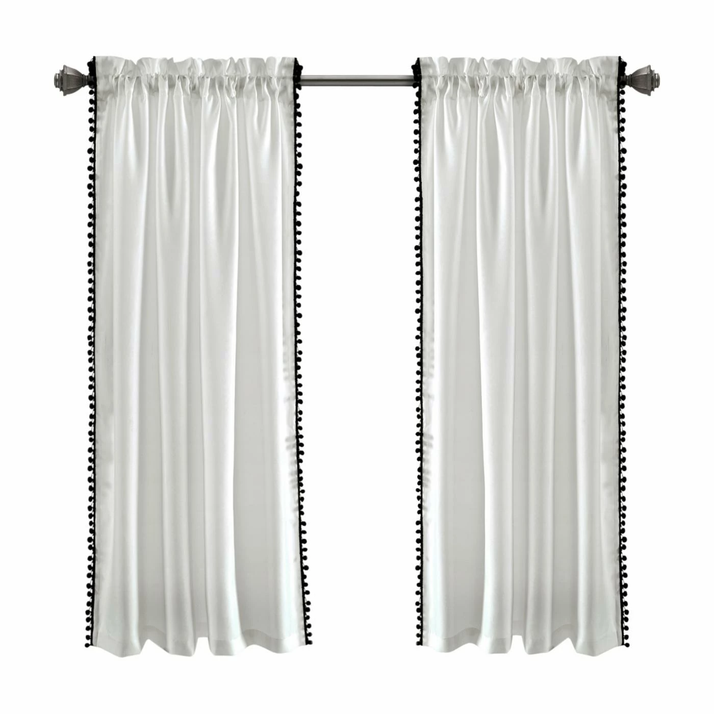 A black and white color scheme on the Lush Decor Pom Pom Curtain Panel gives it a classic look. This curtain panel is made of 100% polyester that will softly filter light. The edges are decorated with pom pom tassels. For best care, dry clean this curtain panel as needed.