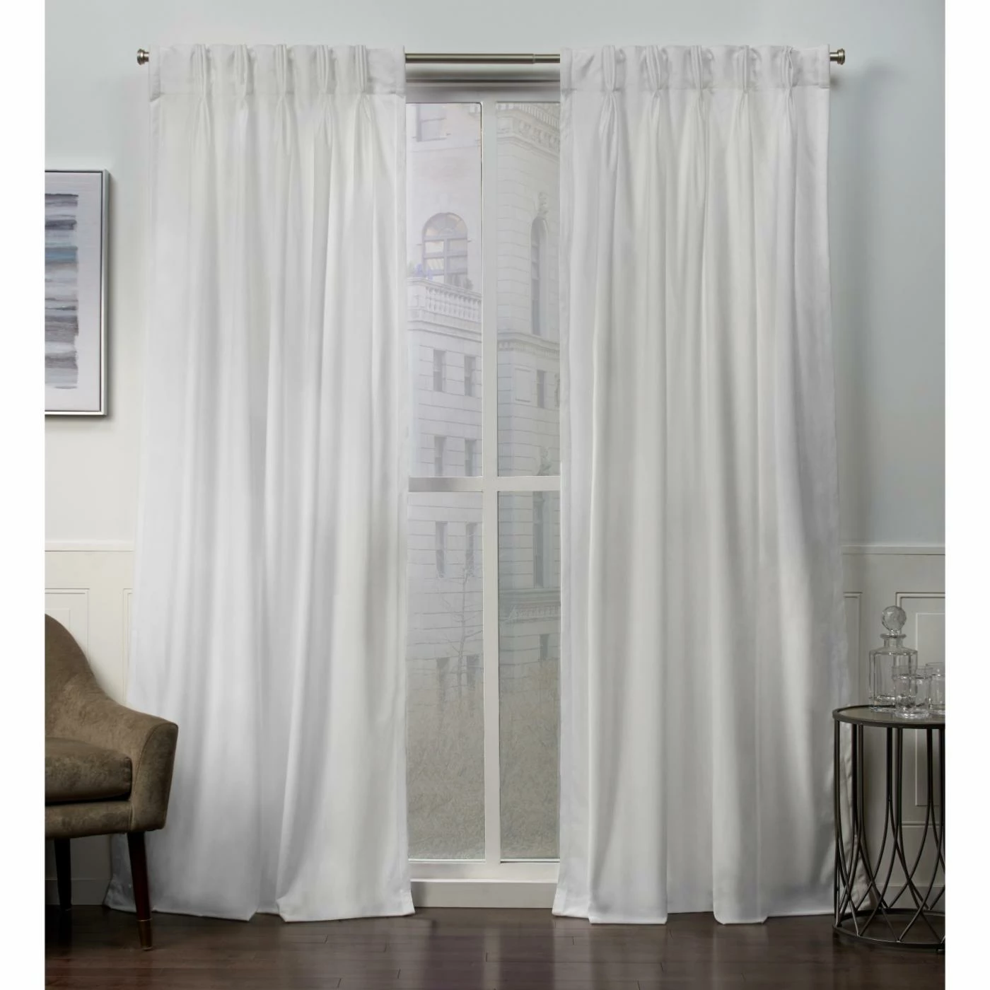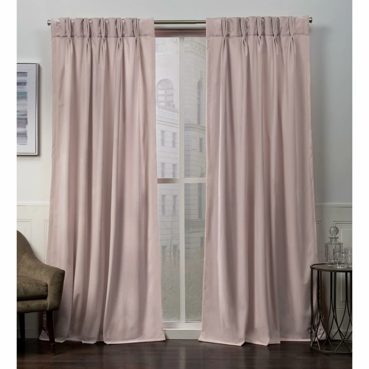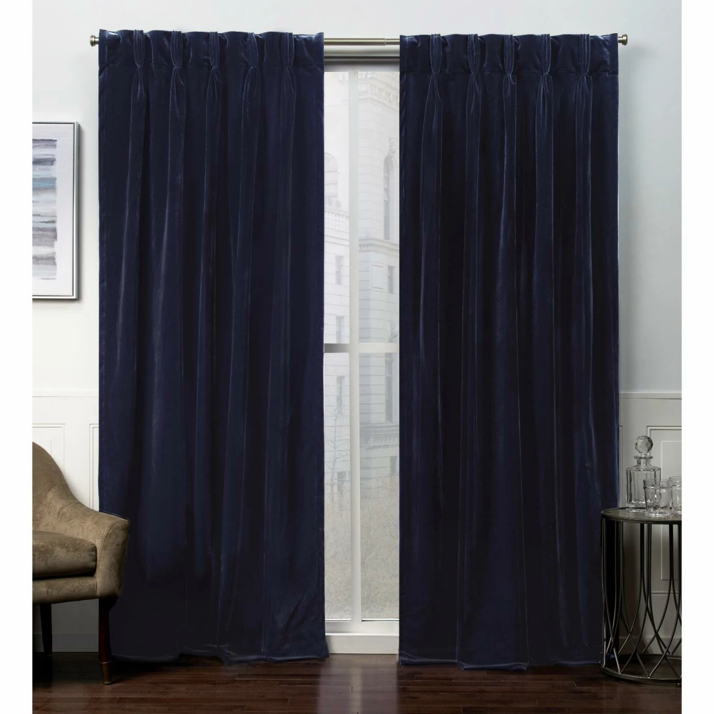 Plush and posh, the Exclusive Home Velvet Heavyweight Pinch Pleat Top Curtain Panel Pair brings a luxurious look to any room. This set’s two included panels are crafted with thick velvet that drapes beautifully from seven hidden tabs. Choose from the available color and size options to customize your home’s dรฉcor. The rod and hanging hardware are not included.