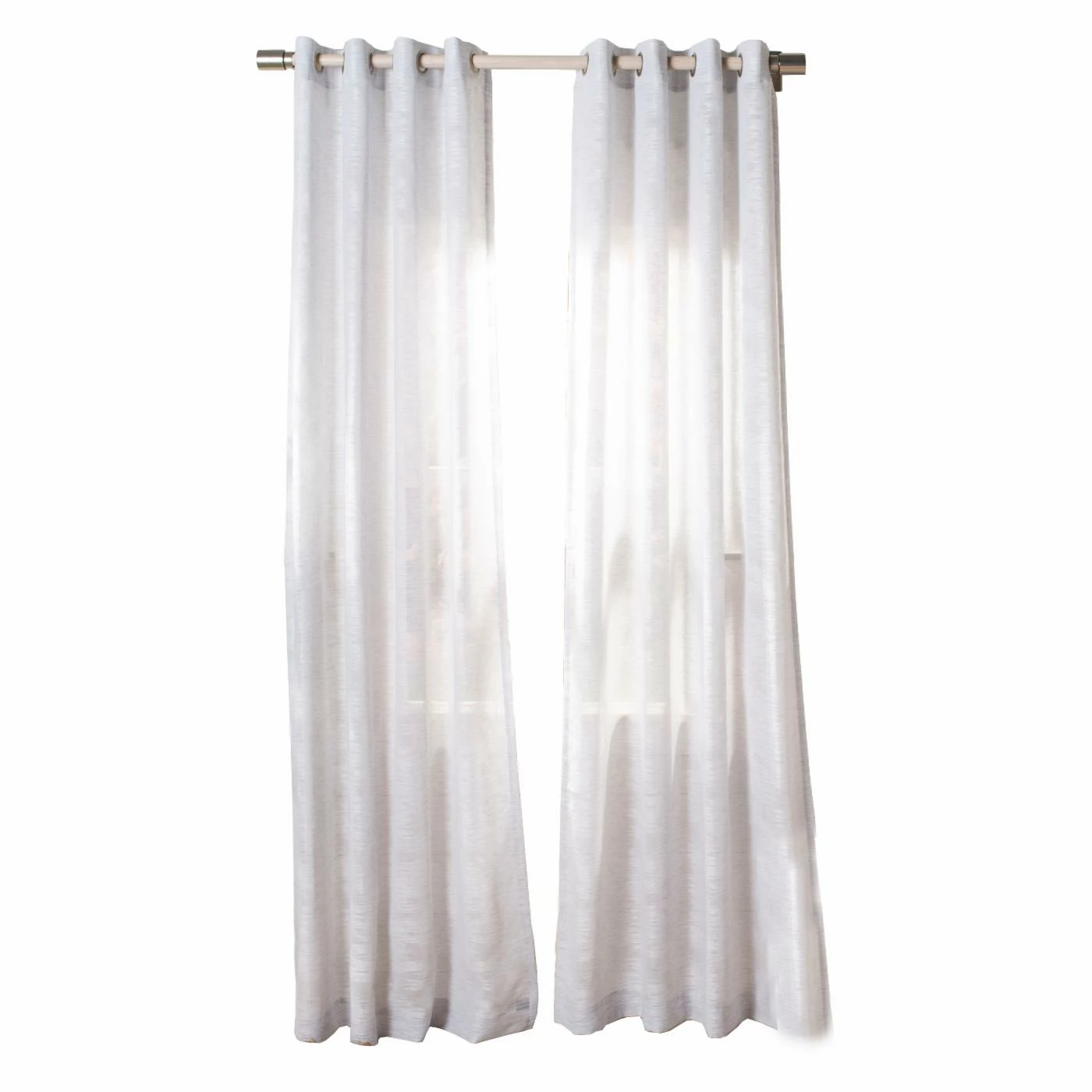 The sheer gray and white fabric of the Safavieh Belta Window Panel lets soft light into your room while adding privacy. This window panel glides smoothly along the curtain rod thanks to the grommets along the top. The polyester fabric is conveniently machine washable.