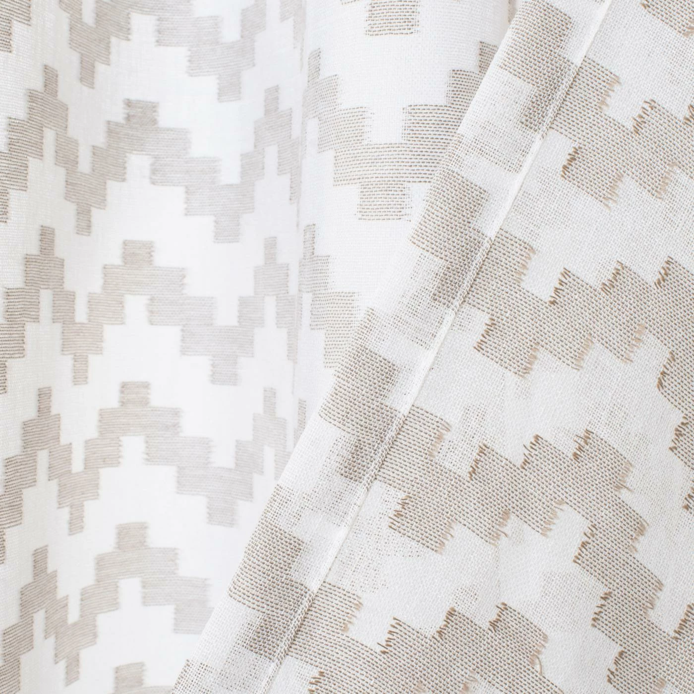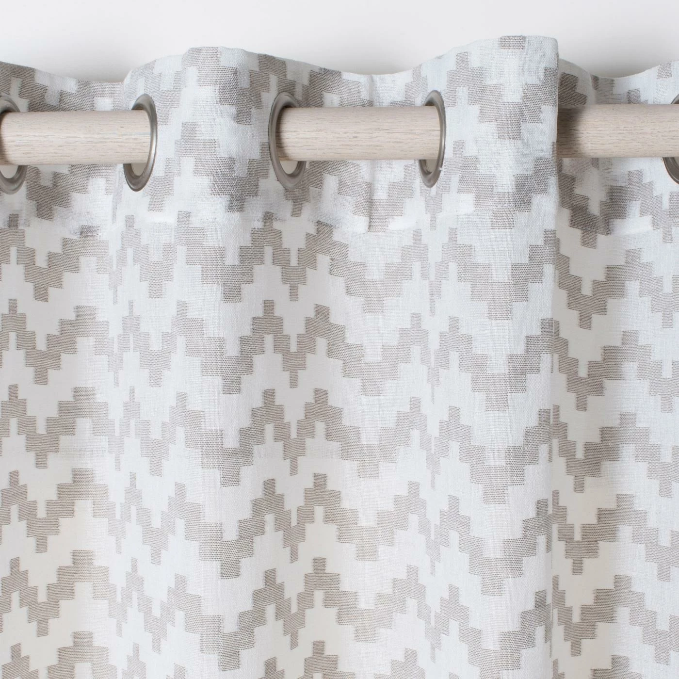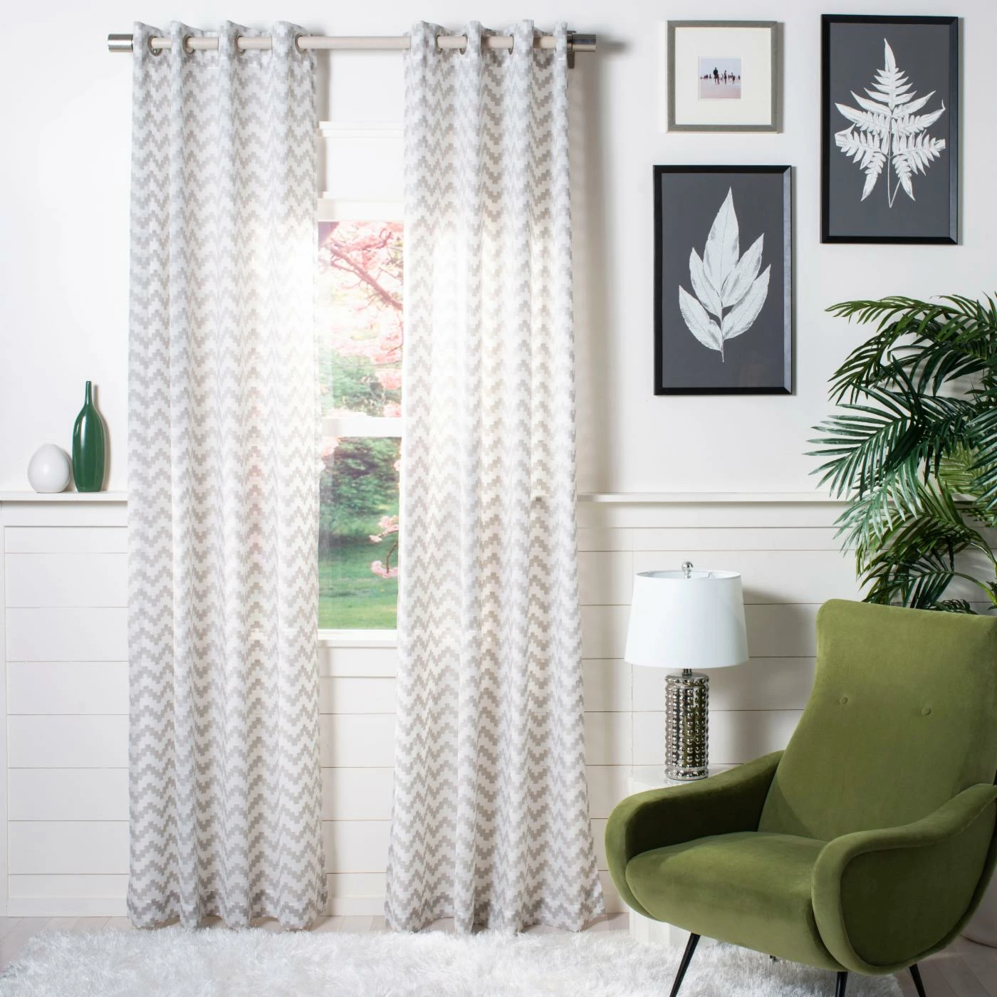An eye-catching geometric pattern in white and taupe gives the Safavieh Penda Window Panel a playful contemporary look. The polyester fabric makes this window panel machine washable and easy to care for. Grommets along the top let it slide easily along a curtain rod.