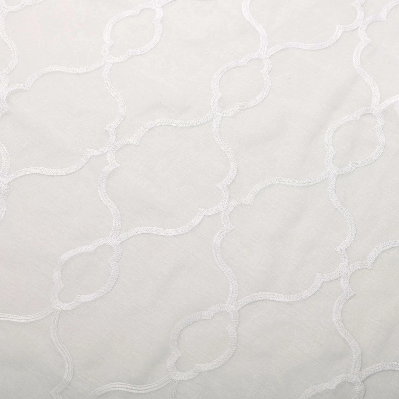 Dress up your windows without weighing them down with the Superior Lattice Embroidered 2 Panels Sheer Curtains. These delicate curtain panels feature metal grommets for easy hanging. Available in your choice of size, these sheer curtains feature a lattice pattern on a sheer ground.