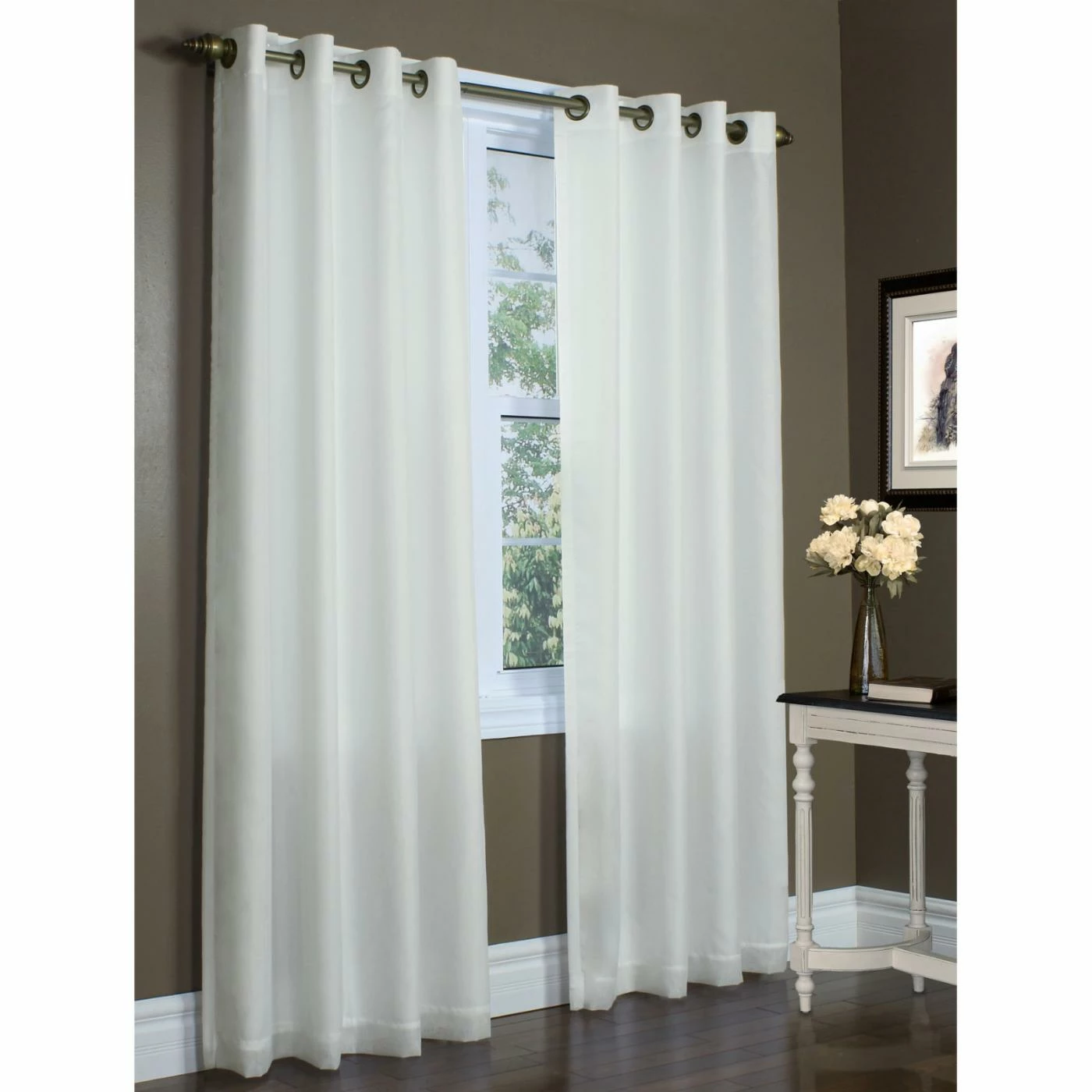 Contemporary and versatile, the Commonwealth Rhapsody Lined Solid Sheer Grommet Curtain Panel features a modern grommet design and comes in a variety of color options.