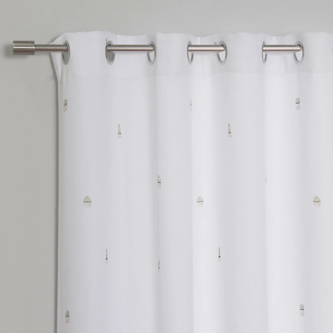 - Opaque style curtain with eight silver grommets