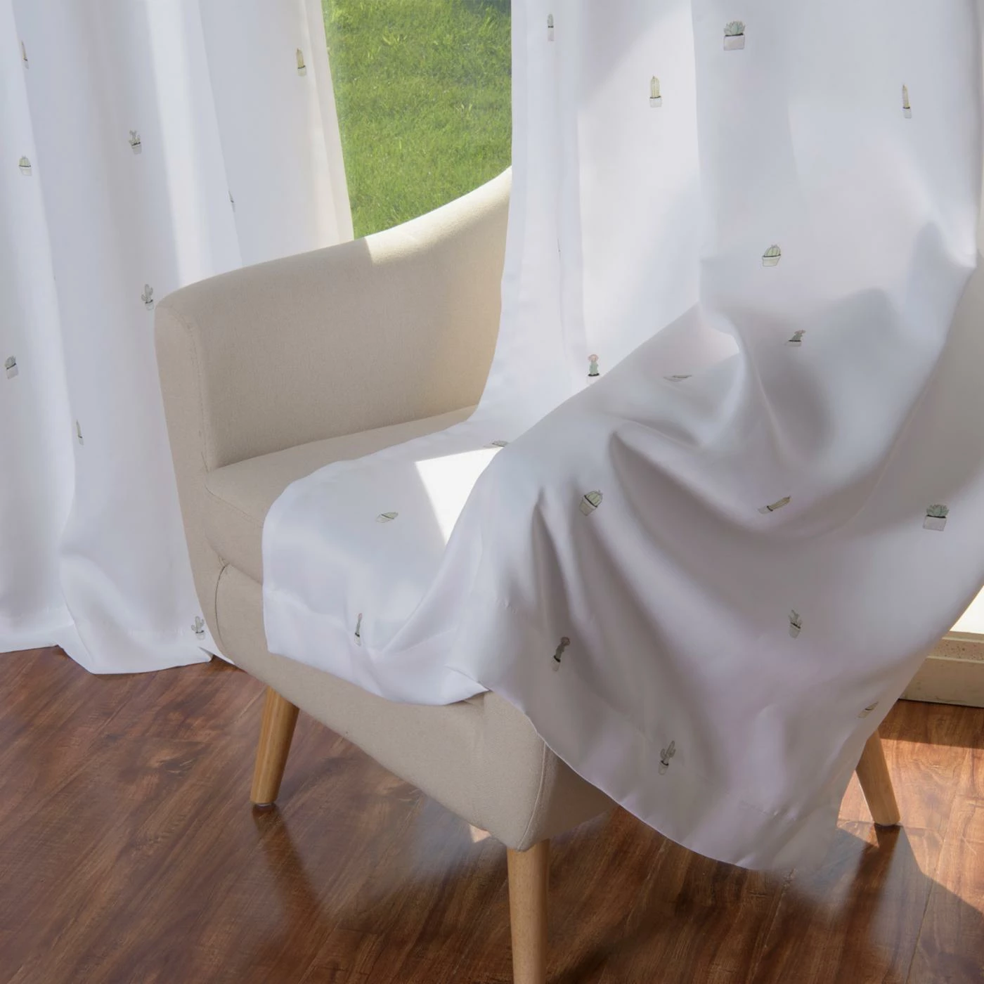 Take a holiday to the desert with the Best Home Fashion Cactus Curtains. These playful window treatments feature tiny green cacti on a crisp white background, giving the design a bright modern feel. Crafted from polyester with grommet style hanging, they are durable and convenient for years of enjoyment.