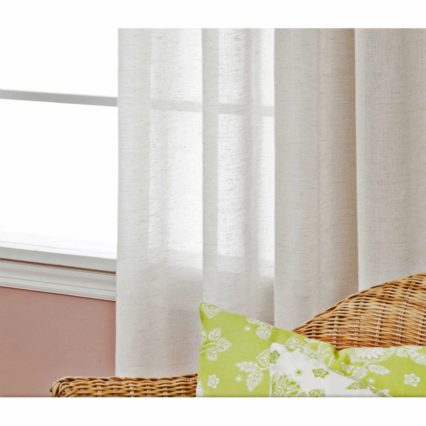 The Best Home Fashion Faux Flax Linen Grommet Top Curtain has a natural appeal that’s right at home in most any home. The 100% polyester construction offers the look of linen without the high price tag, and their sheer design allows light to flow through the room. You’ll get two panels with this set, each with eight antique bronze-finished grommets with a 1.6-inch inner diameter.