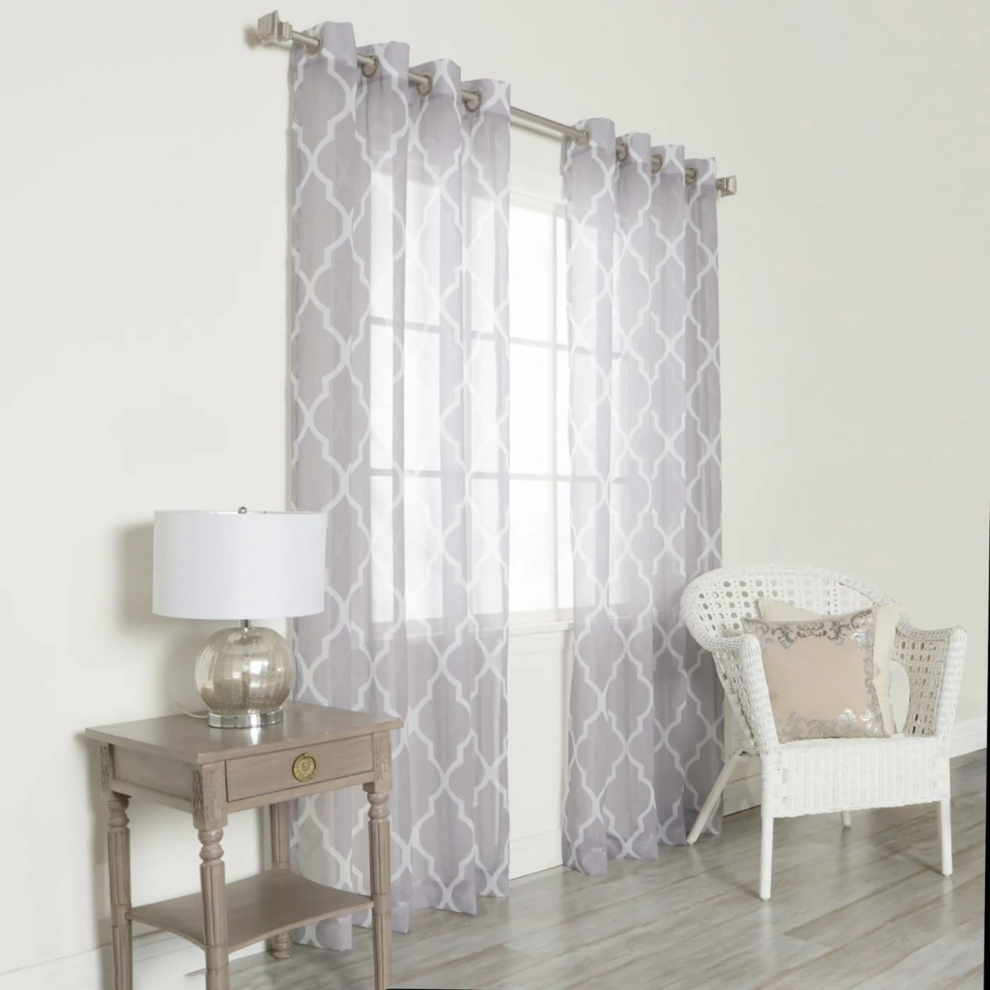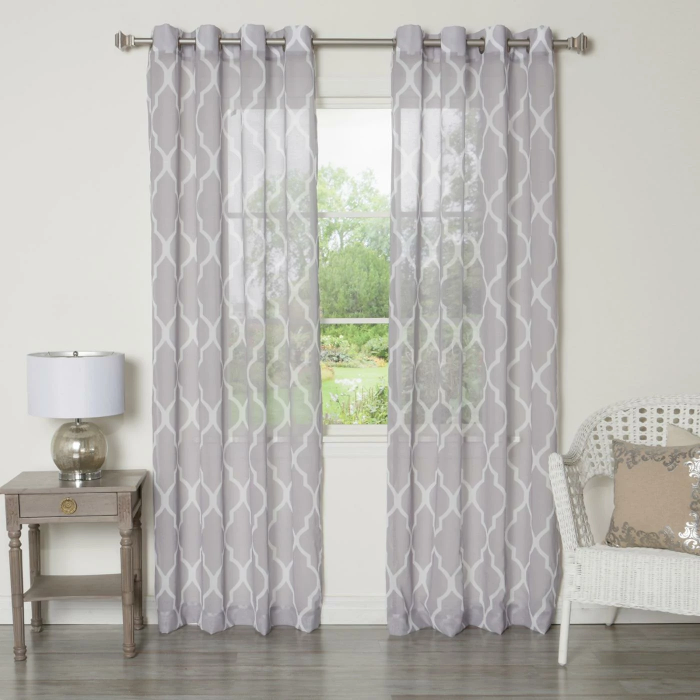 The Best Home Fashion Grey Sheer Moroccan Print Grommet Top Curtain offers a subtle interpretation of classic Moroccan print. Crafted of 100% polyester, this sheer top curtain can be used alone or layered with other window treatments. It’s available in a choice of color and has metal grommets for easy hanging.