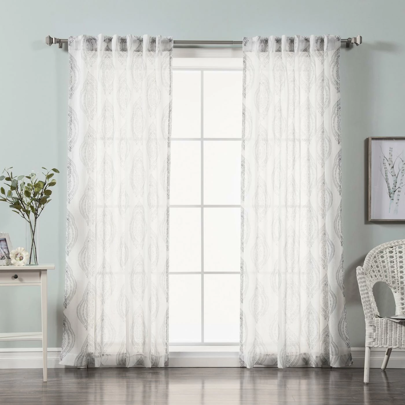 The Best Home Fashion Medallion Sheer Faux Pippin Curtain Panel Pair exudes a light and airy feel with its linen material and sheer construction. These machine washable curtain panels come in your choice of available color options.