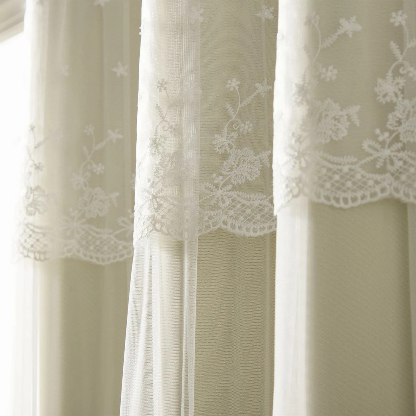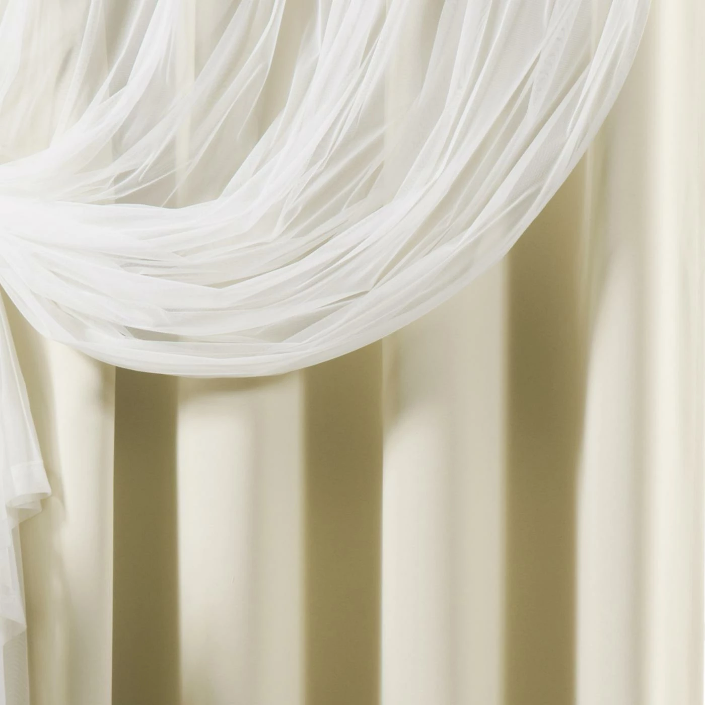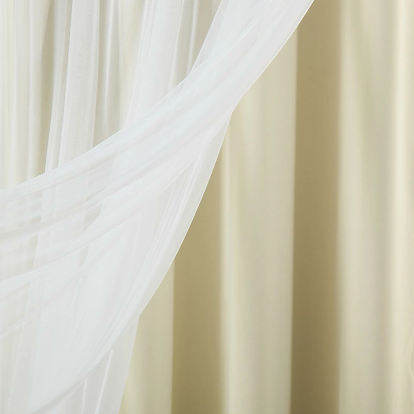 - 2 solid blackout panels & 2 sheer panels with attached valance