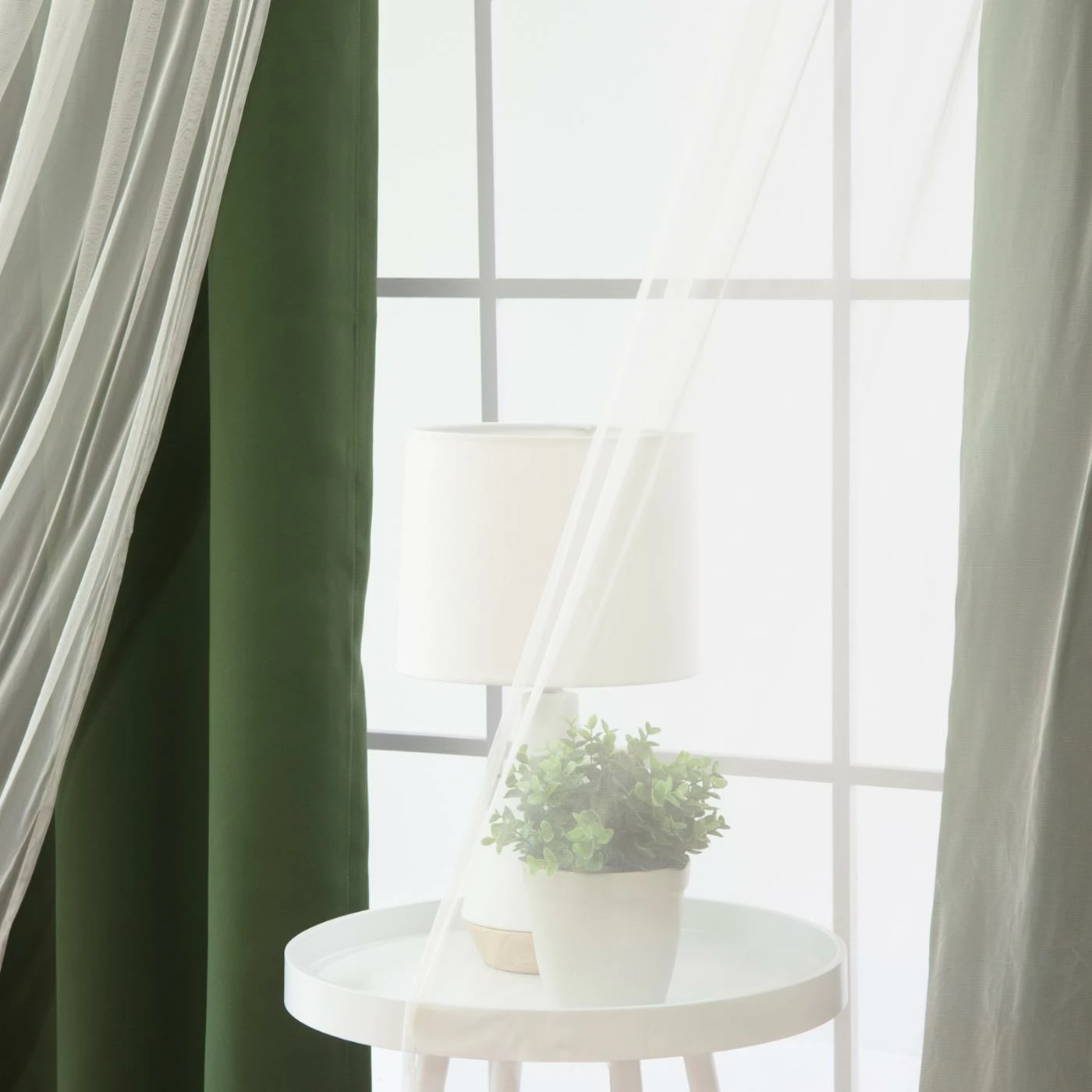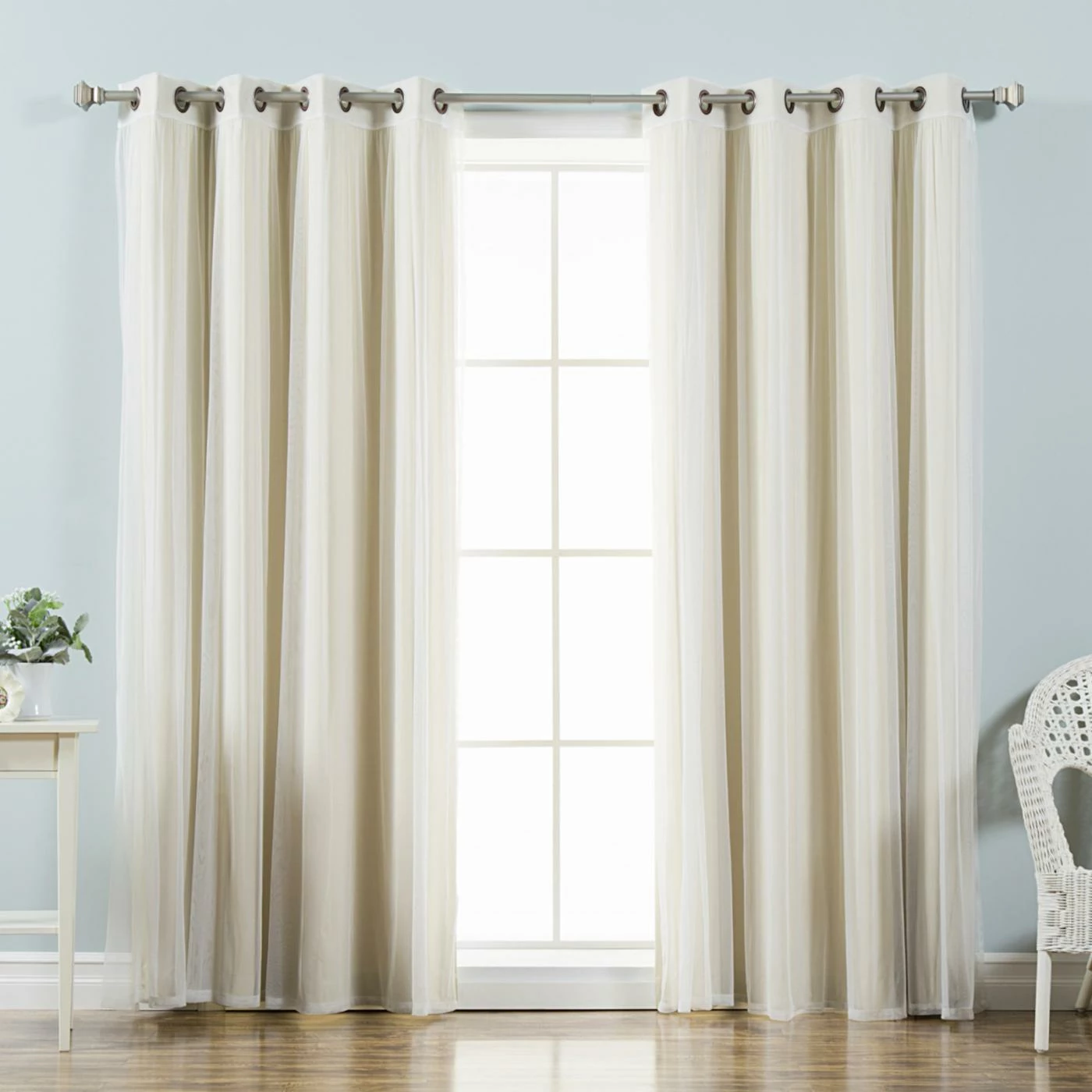 The fashionable, feminine style of the Best Home Fashion Mix & Match Tulle Sheer Lace Blackout Curtain – Set of 4 takes any room from mundane to marvelous. An easy way to achieve an on-trend layered look, this mix-and-match set includes two solid blackout curtain panels and two sheer tulle curtain panels. The triple-weave construction on the blackout curtains blocks up to 99% of incoming light while also insulating against heat and cold. Hang the sheer tulle panels over, under, or alongside the solid panels to find a look you’ll love. Metal grommets make for easy hanging, and the set is available in a choice of size and color.