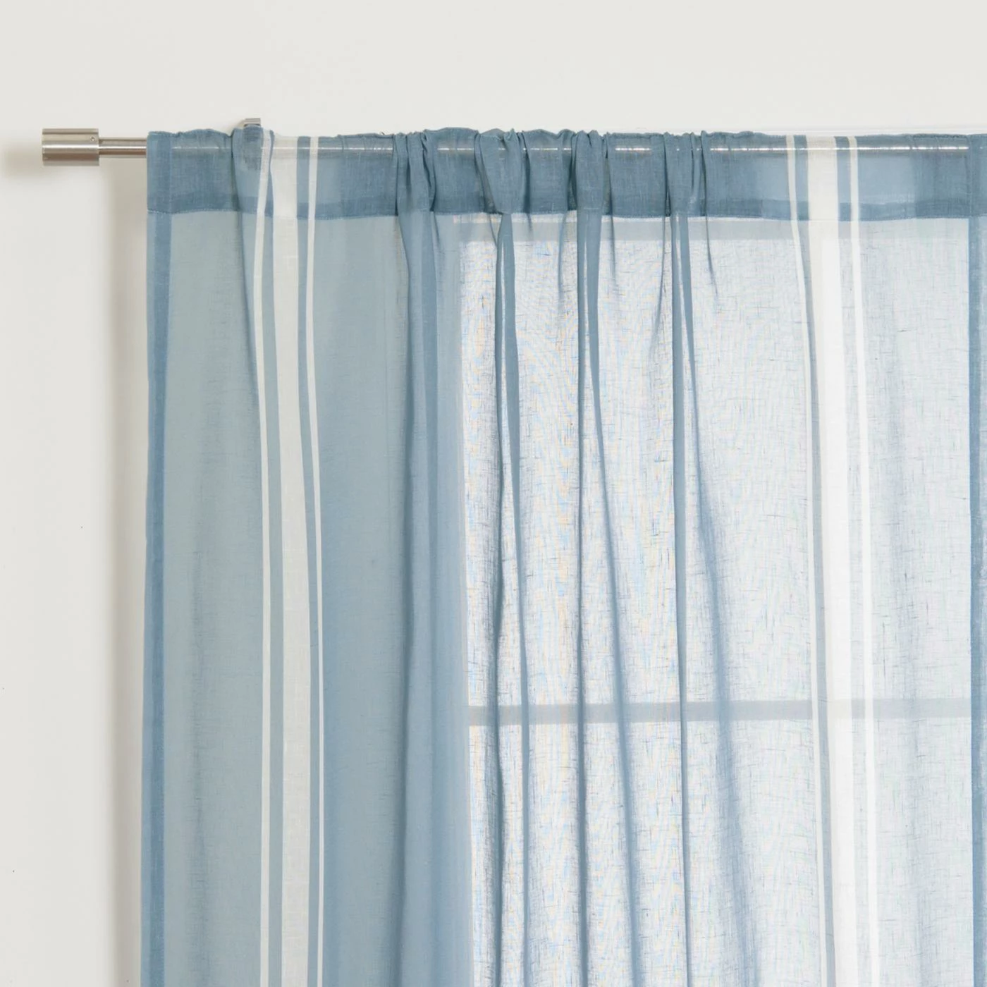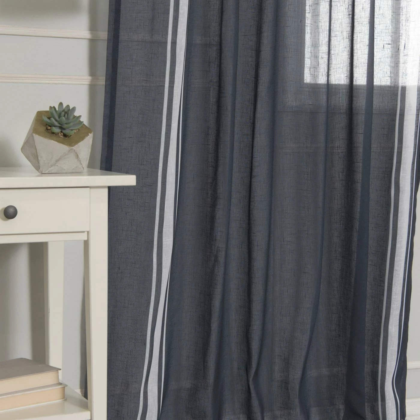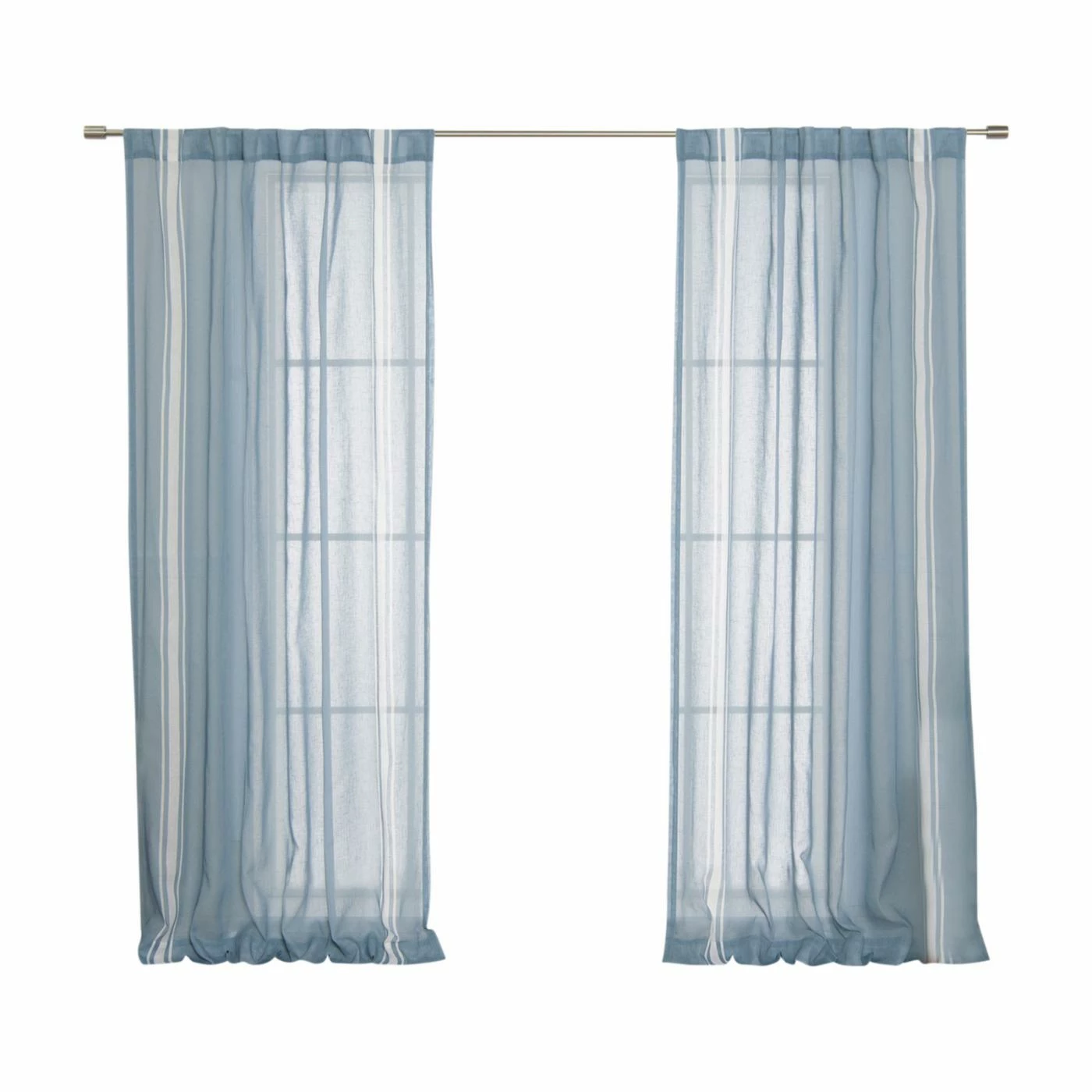 Bring a touch of color to any room with the Best Home Fashion Sheer Faux Linen Reverse Triple Stripe Curtains. Sold in your choice of available hue, these sheer curtains feature a solid design with white vertical stripe accents. Rod pocket hanging makes it easy to install the two panels for effortless home decor.