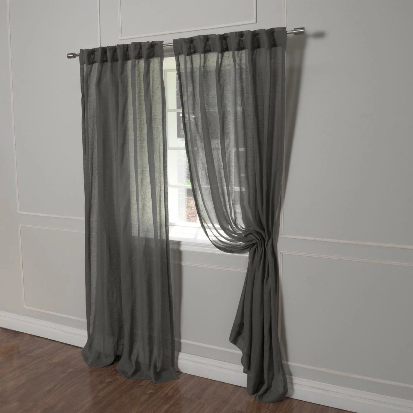 Sold in your choice of available color, the Best Home Fashion Sheer Linen Look Curtains features a simple rod pocket design crafted from pure polyester. The sheer look of these curtains creates a bright, open feel to your space that is perfect for living rooms and kitchens.