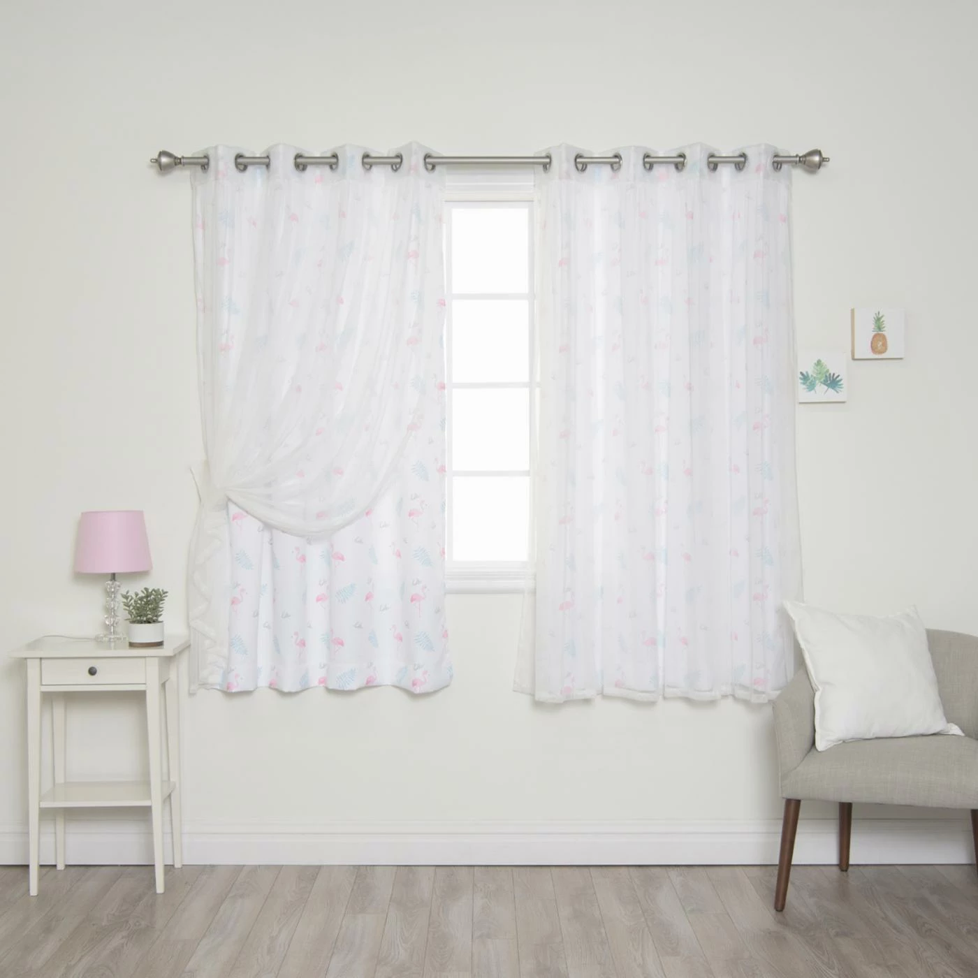 Stylish and whimsical, the Best Home Fashion Tulle and Flamingo Mix and Match Curtains are sure to enliven the look of your space. These curtains feature two privacy panels with a fun flamingo print and two elegant sheers. They are machine-washable and come in your choice of available size option.