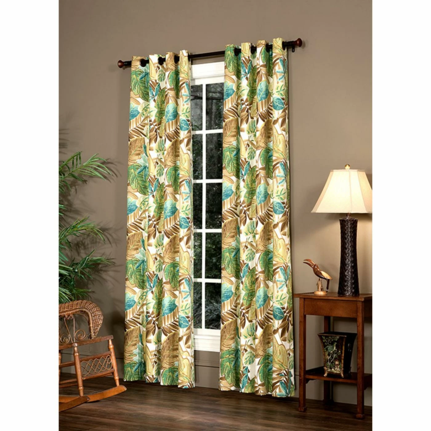 The Brunswick Grommet Top Curtains by Thomasville at Home has a cheerful floral pattern that is sure to brighten any space. Made of 100% cotton, these tan, green, and cream curtains each have eight grommets in an antique brass finish. The grommets make it easy to hang the curtains. Made in the U.S.A., these botanical curtains are sure to be a great addition to your home. Pair these curtains with other items from the Brunswick Collection on Hayneedle.com for a cohesive look.