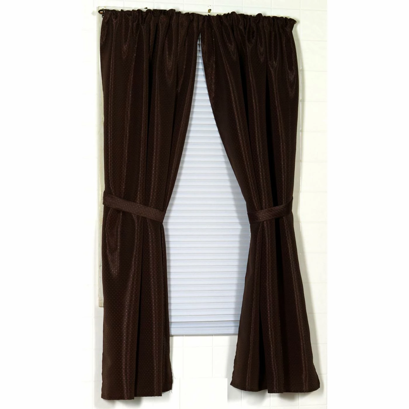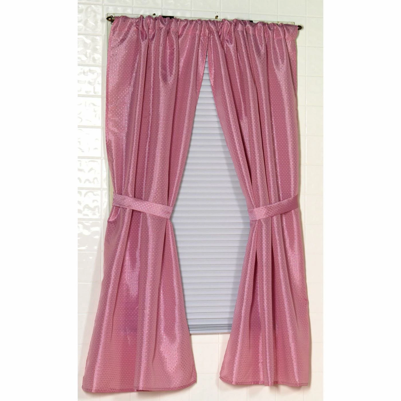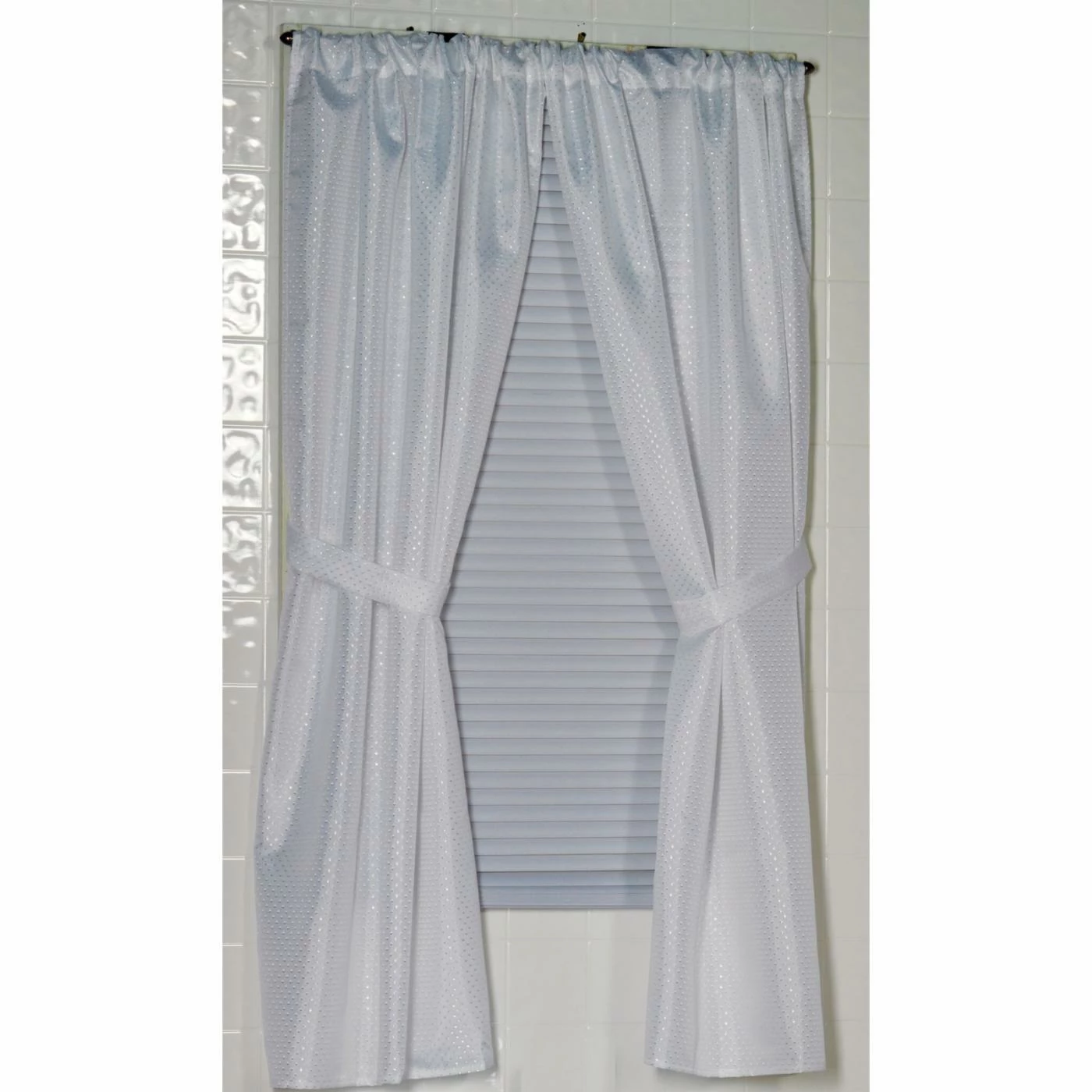 The Carnation Home Fashions Lauren Diamond-Piqued Panel Pair features a textured diamond print and tie backs to add color and style to your bathroom. This paneled pair of curtains ties back for a traditional look and easily drops for privacy.