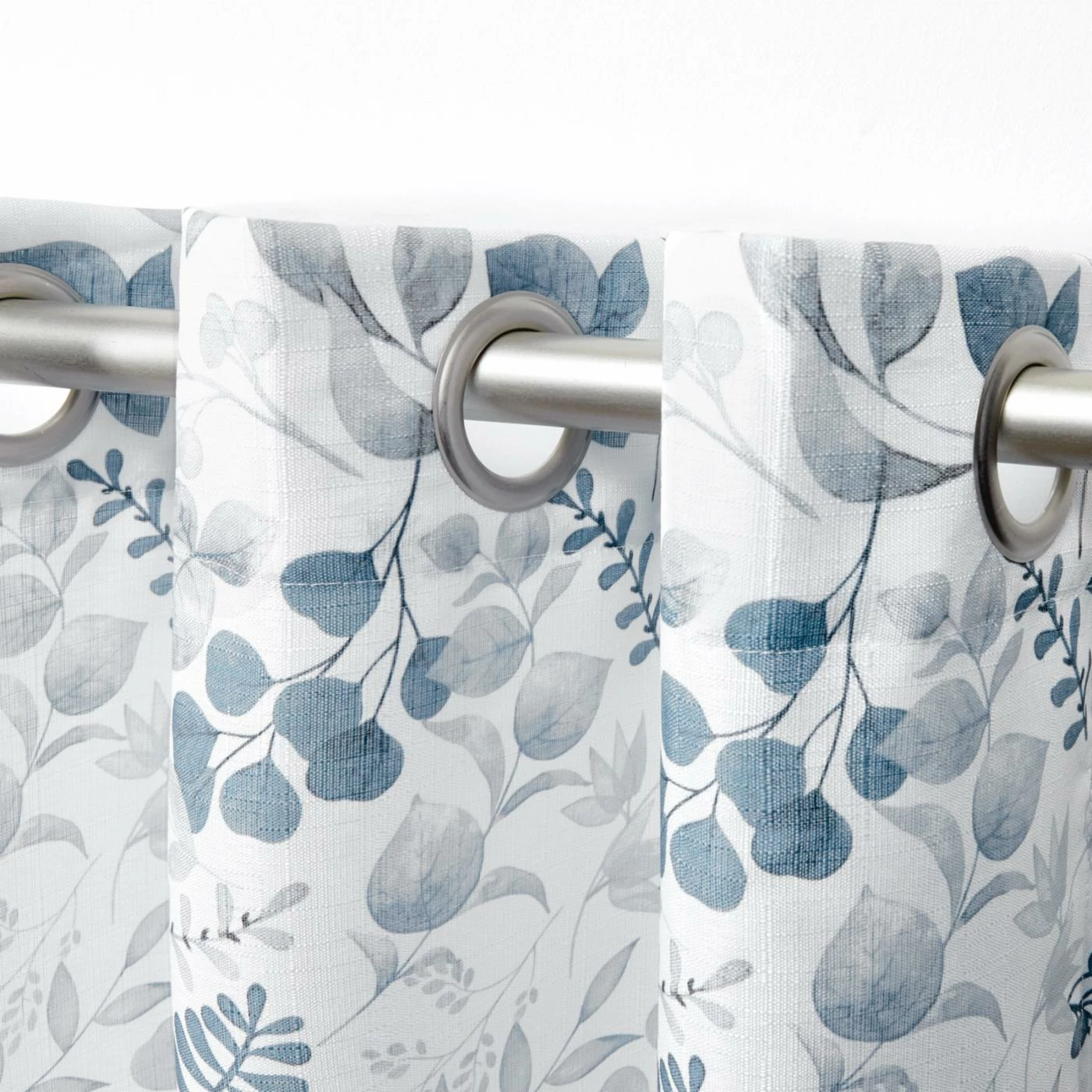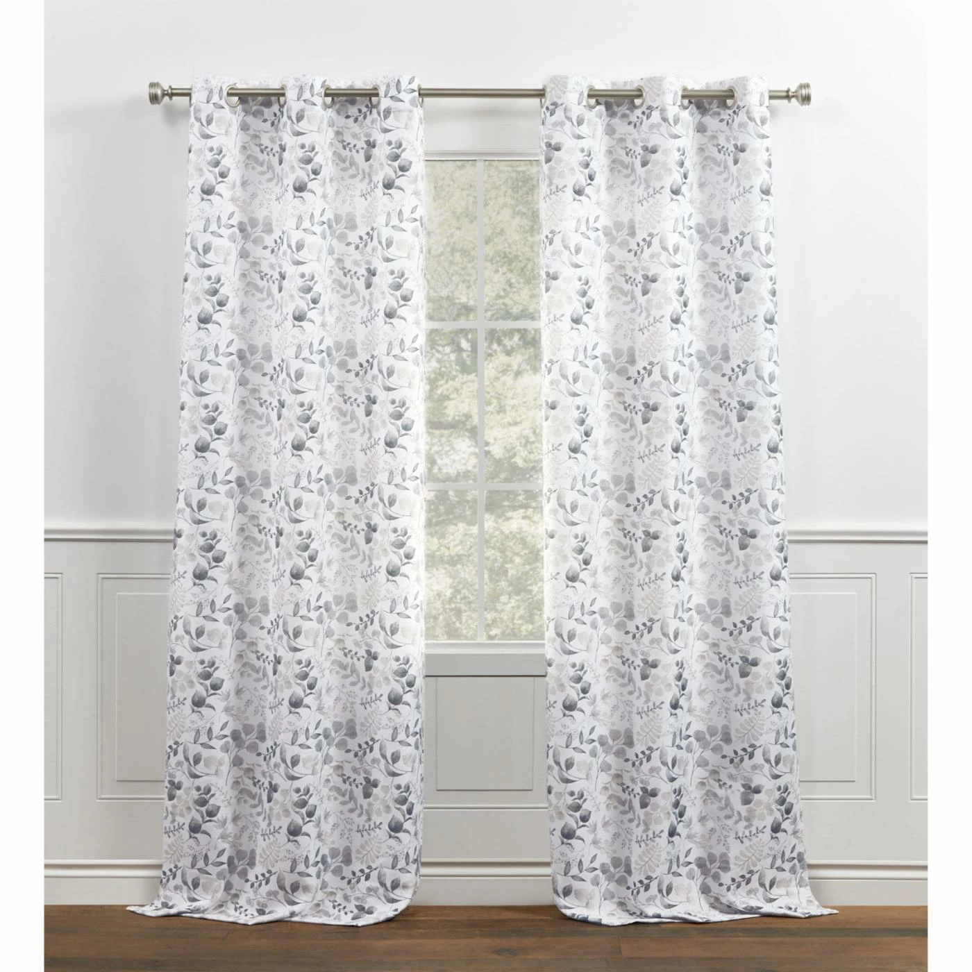 - Light-filtering, floral pattern curtains with grommet top treatment
