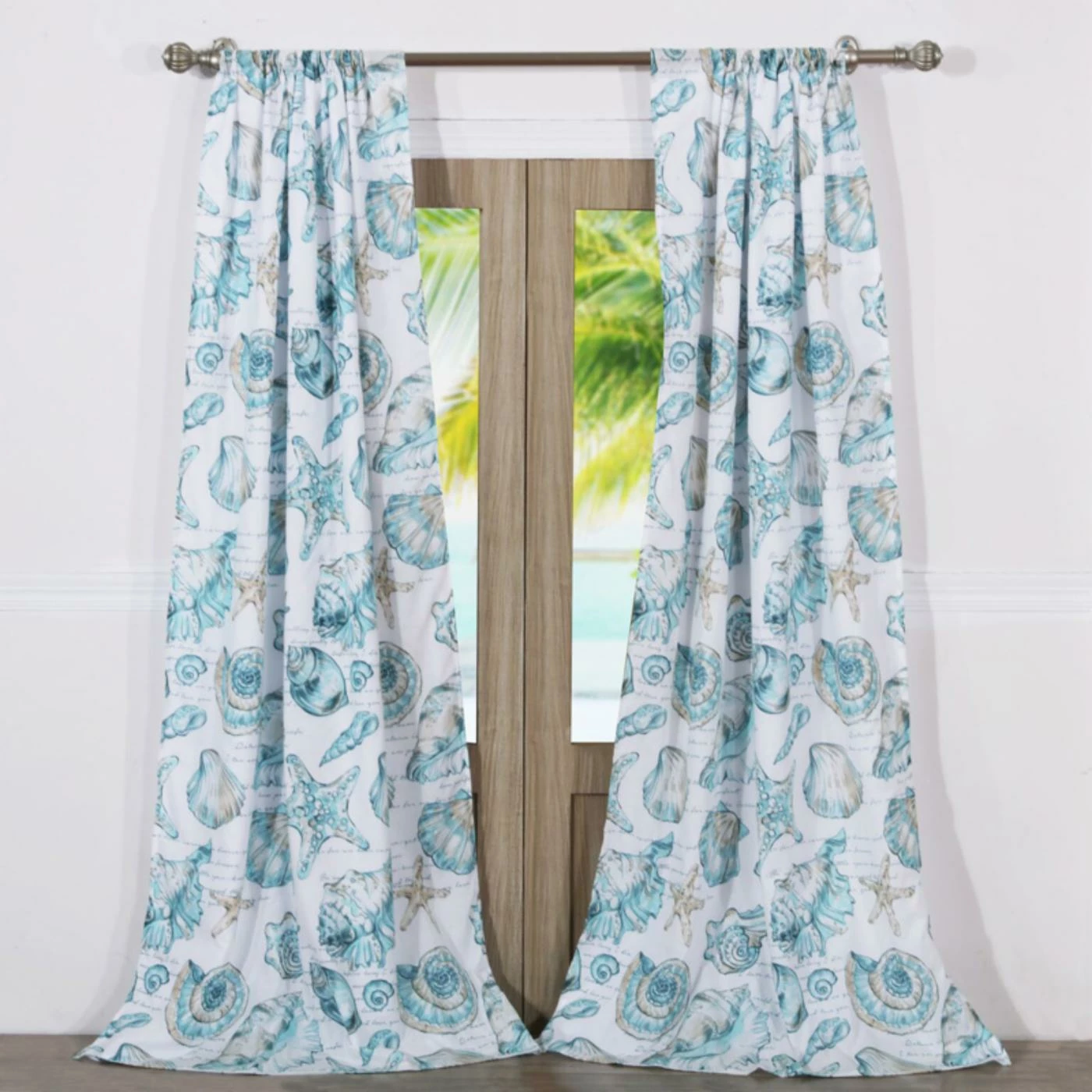 Add a seaside feel to your windows with the Cruz Lined Panel Pair by Barefoot Bungalow. This curtain panel pair features large seashells in cool blues and taupe. The face and lining are both constructed with polyester, which is machine washable for easy care. The added lining reduces sun exposure and improves privacy. Hang conveniently on most standard rods with the three-inch rod pockets. Enjoy a breezy, beachside look in your room with this alluring curtain panel pair.