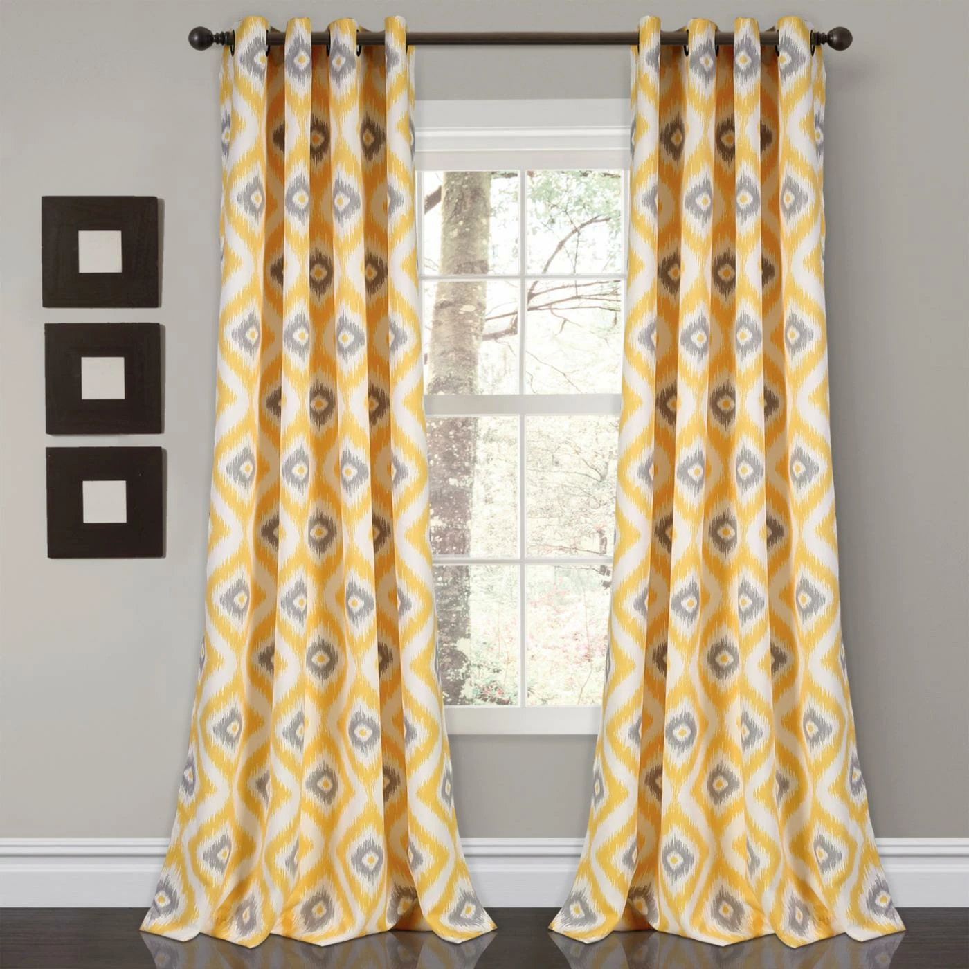 The geometric design of the Diamond Ikat Window Curtain by Half Moon features a vibrant color against a white background, which is the perfect complement for neutral-colored walls. The room-darkening panels filter sun, keeping you cool when the sun is just a bit too powerful. Cleaning is easy, as the curtain is machine washable and can be hung dry.