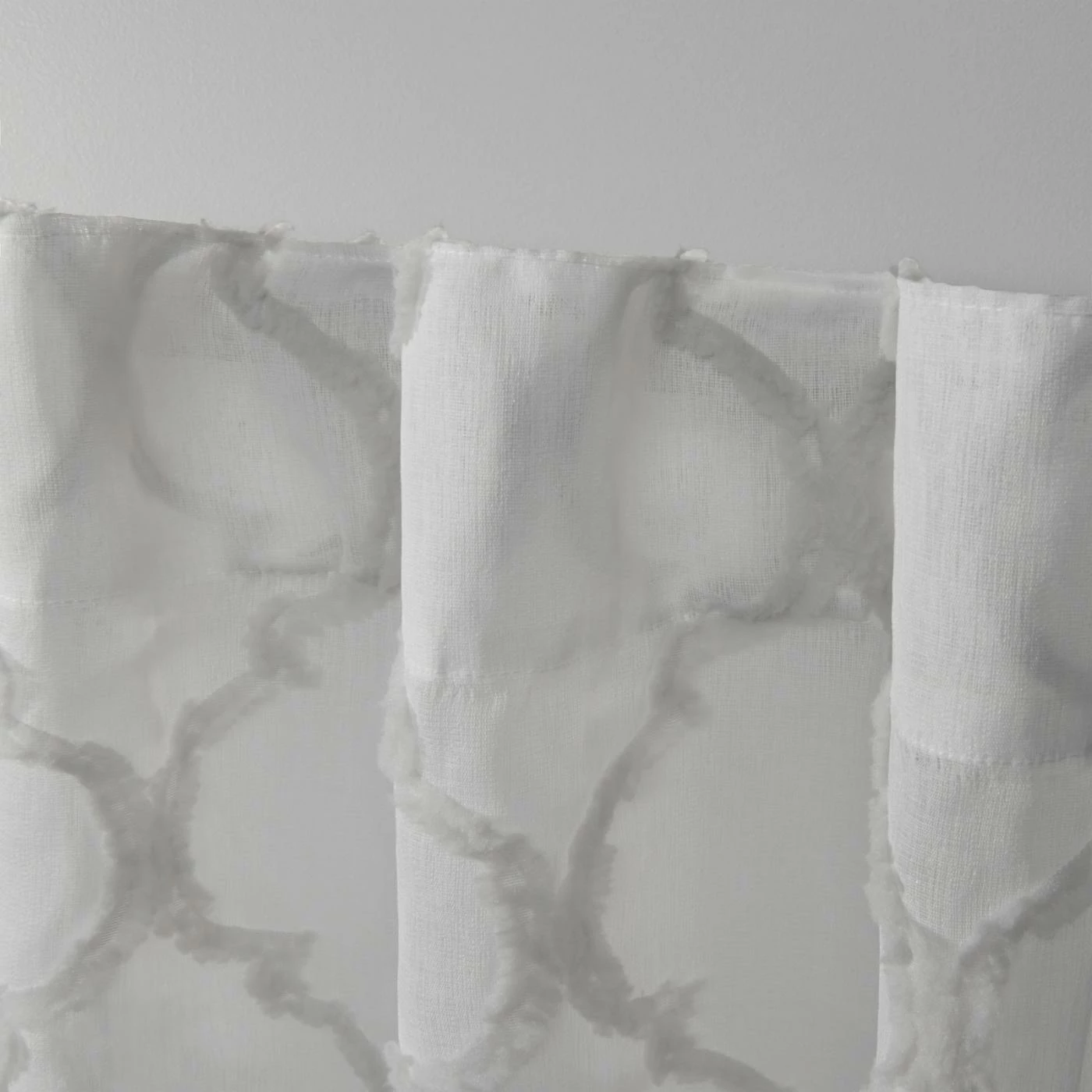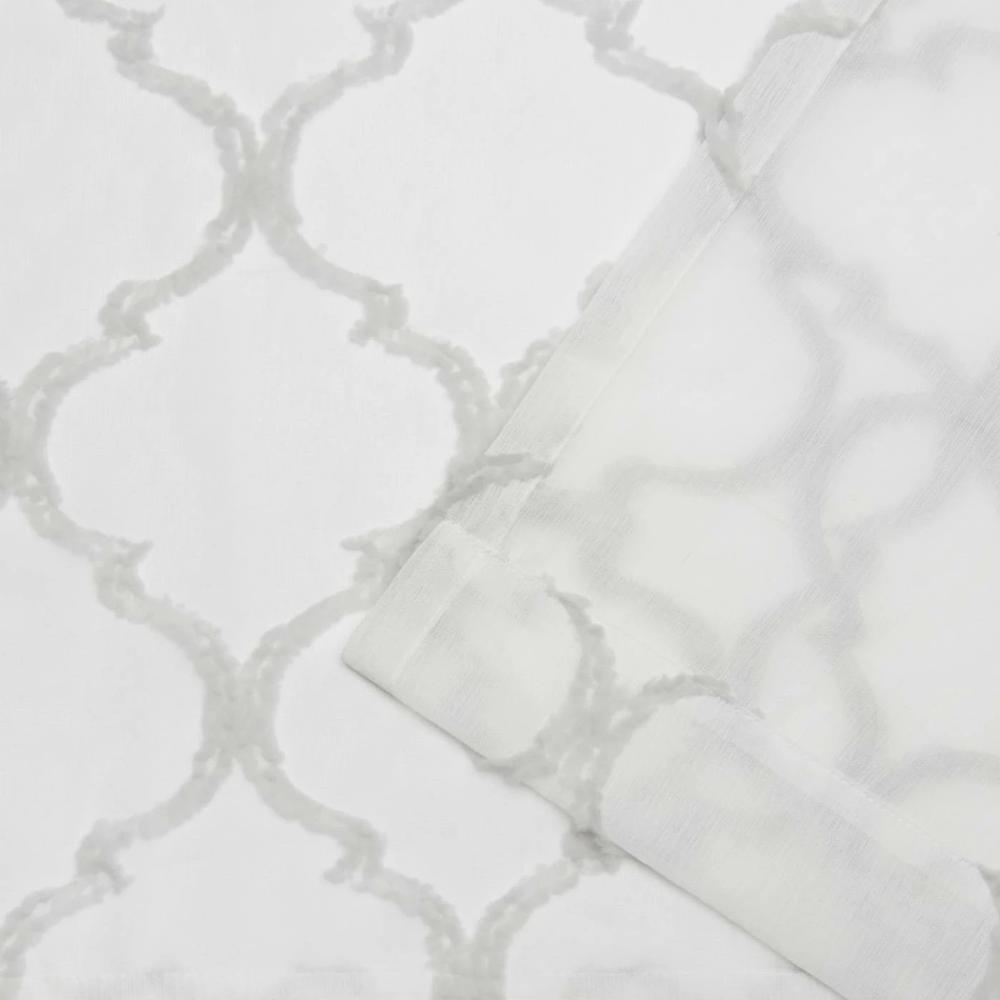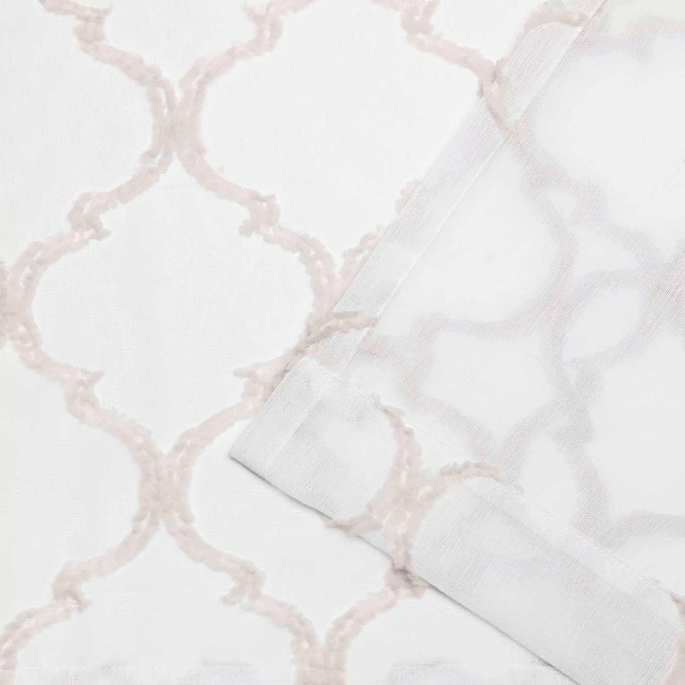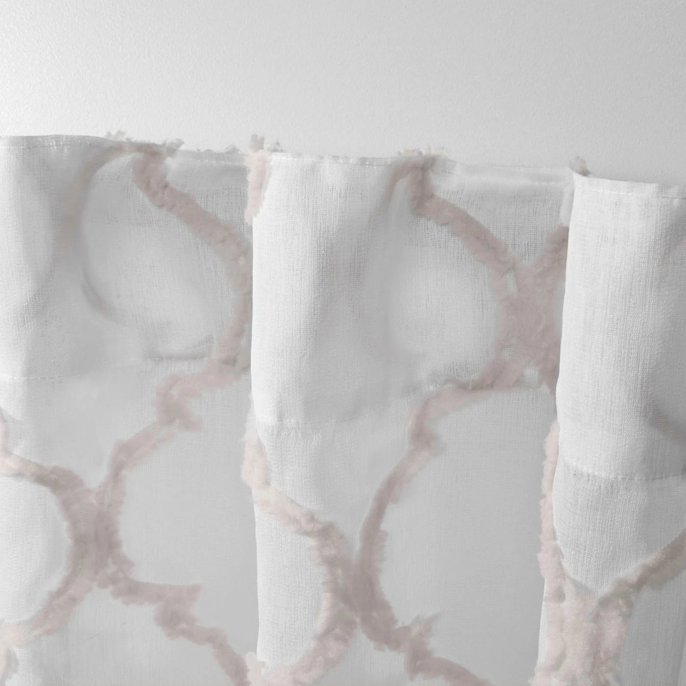 Add an elegant look to your bedroom or living room with the Exclusive Home Aberdeen Sheer Hidden Tab Top Curtain Panel Pair. The sheer linen-like fabric filters light for a soft glow in daytime. The trellis print comes in your choice of available colors. Hidden tabs make them easy to display on any size rod.