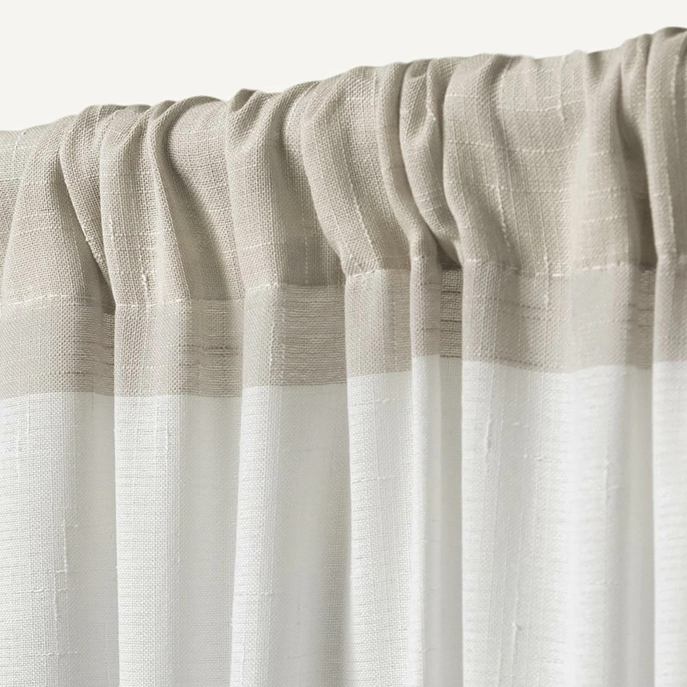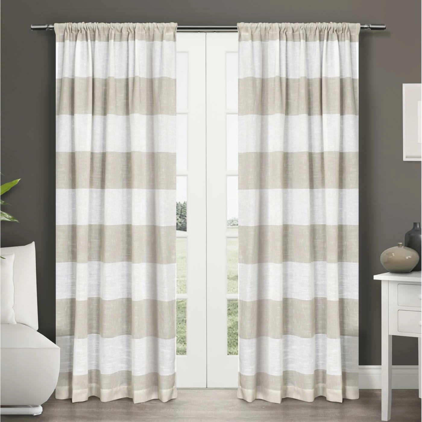 Fabricated from linen and polyester, the Exclusive Home Darma Rod Pocket Curtain Panel Pair is ideal for a touch of detail. These neutral-toned striped curtains are shades of white and linen to create a calming motif. A rod pocket design ensures a classic look and easy use.