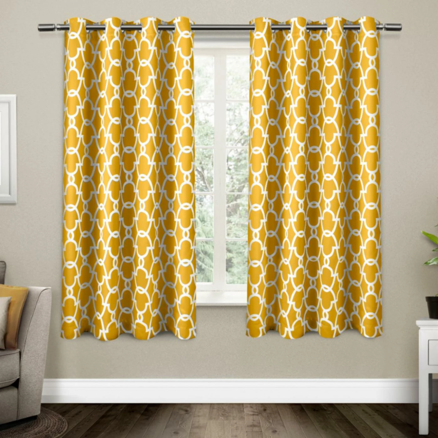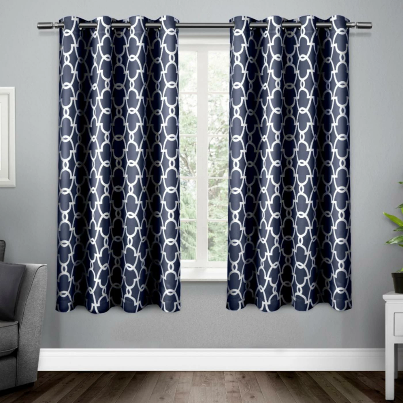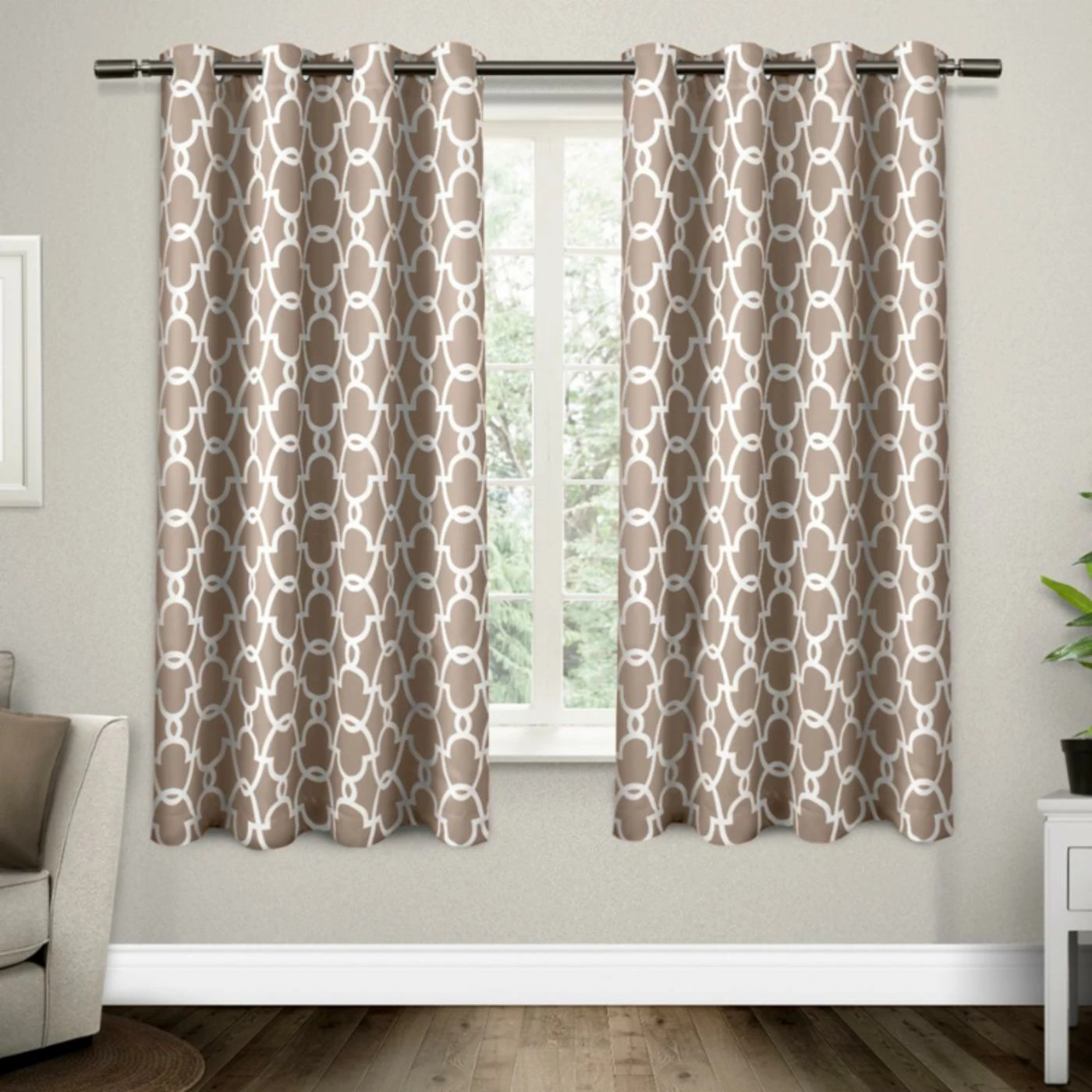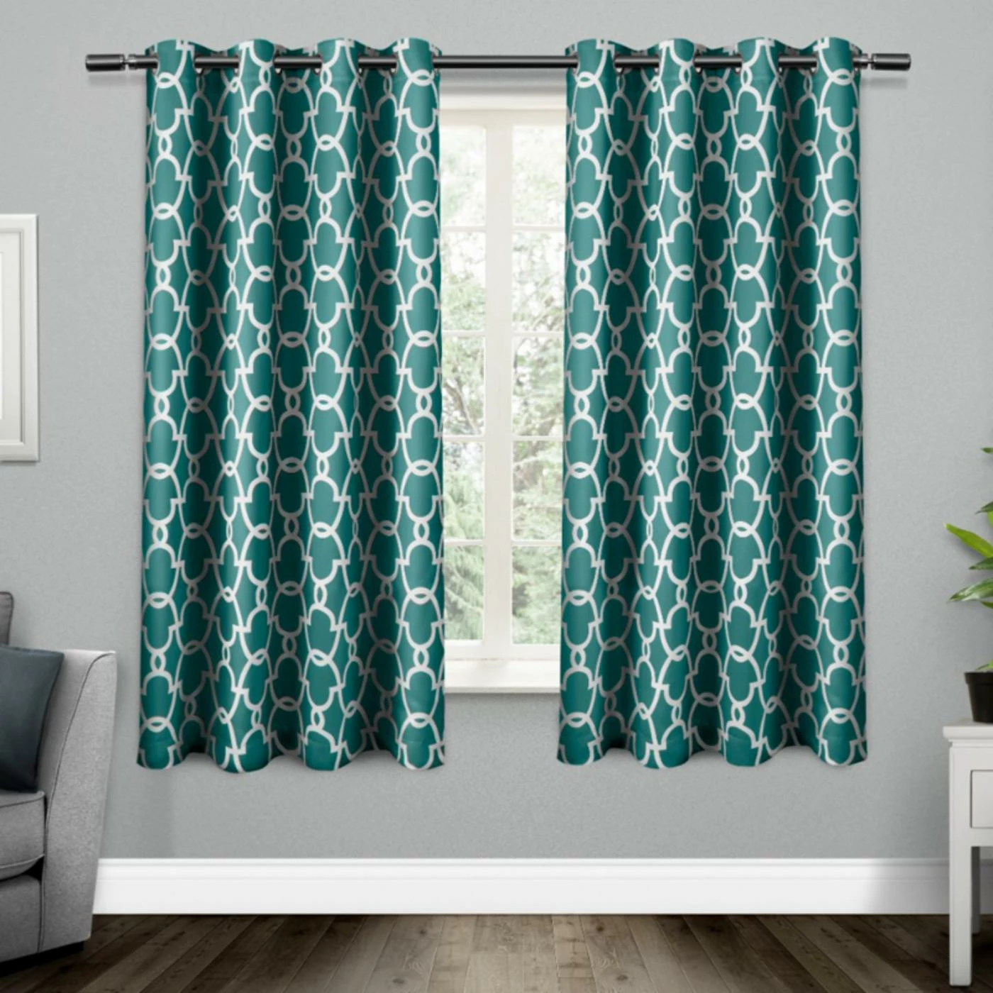 Use the Exclusive Home Gates Grommet Curtain Panel Pair for a vibrant statement to any room. With a geometric pattern, these curtains hang from sturdy grommets to accentuate its design. Choose from available colors to personalize these blackout curtains to your home.