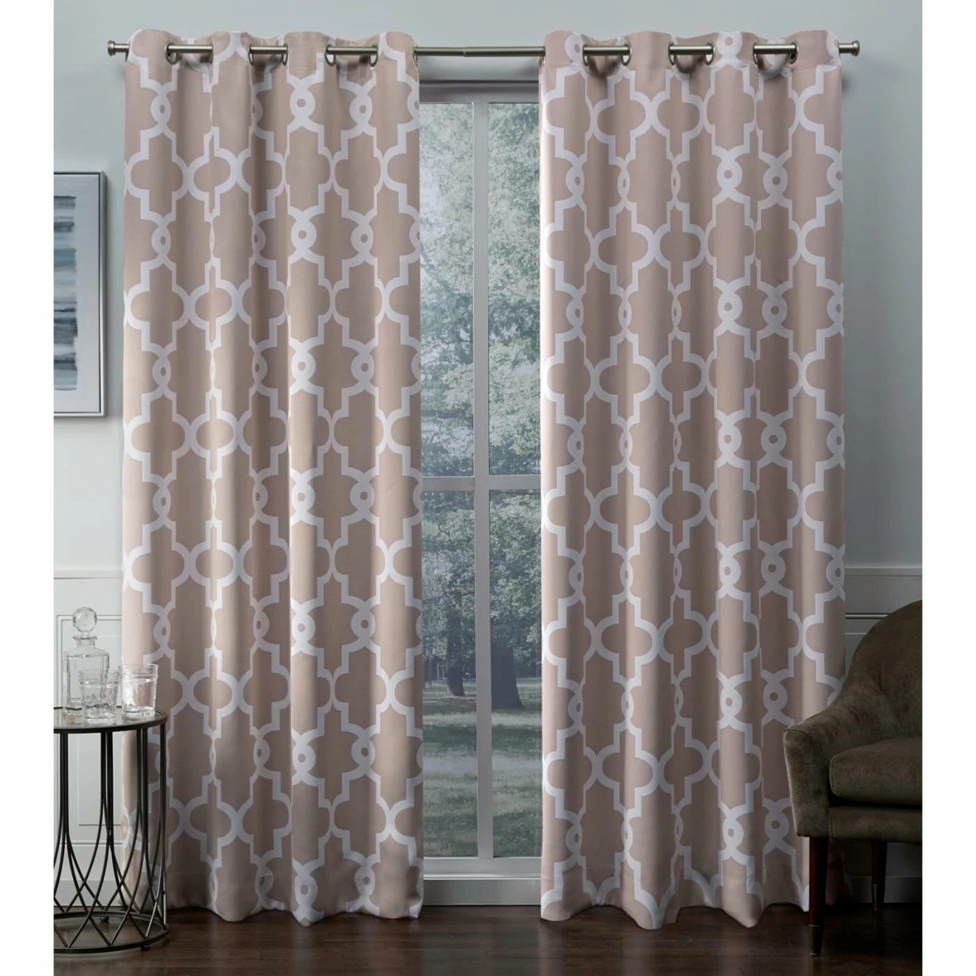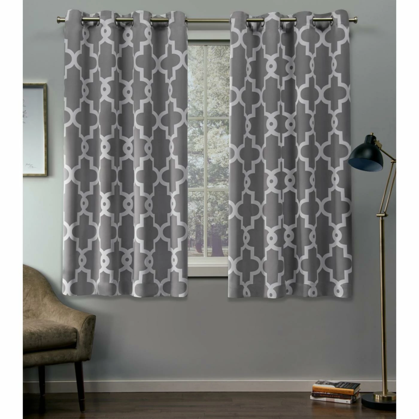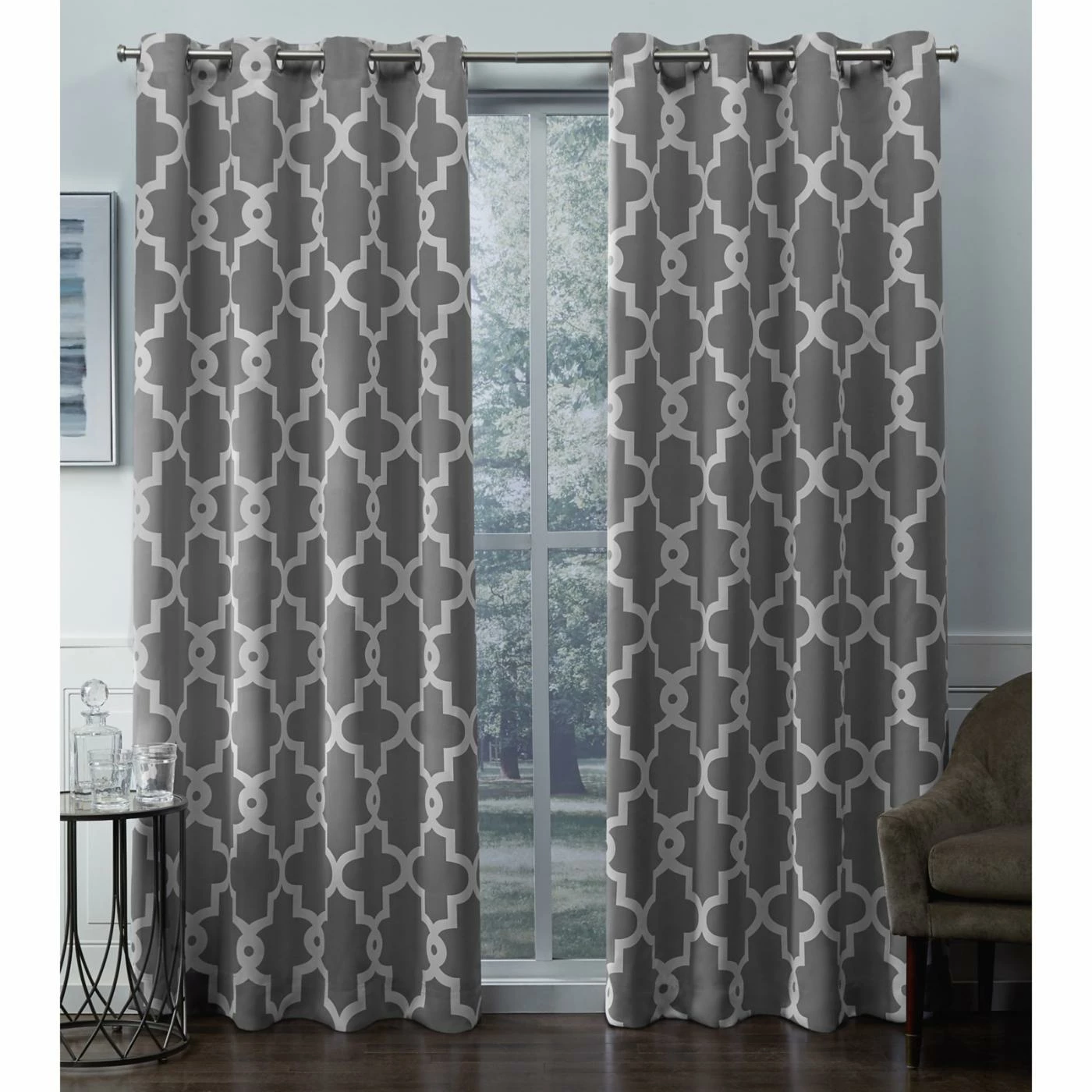 Ideal for your bedroom window, the Exclusive Home Ironwork Sateen Blackout Grommet Curtain Panel Pair is woven with blackout technology to block out light, noise, cold, and heat. Grommets give these ironwork-inspired curtain panels a contemporary drape. The set includes two curtain panels and is offered in a choice of available size and color options.