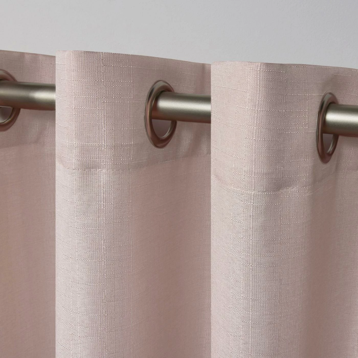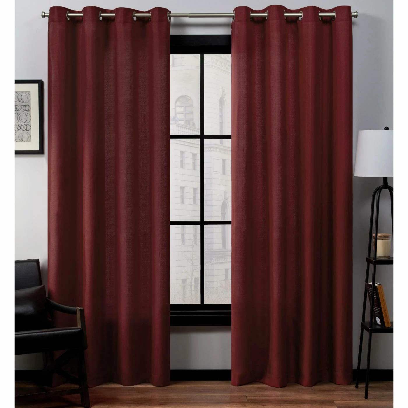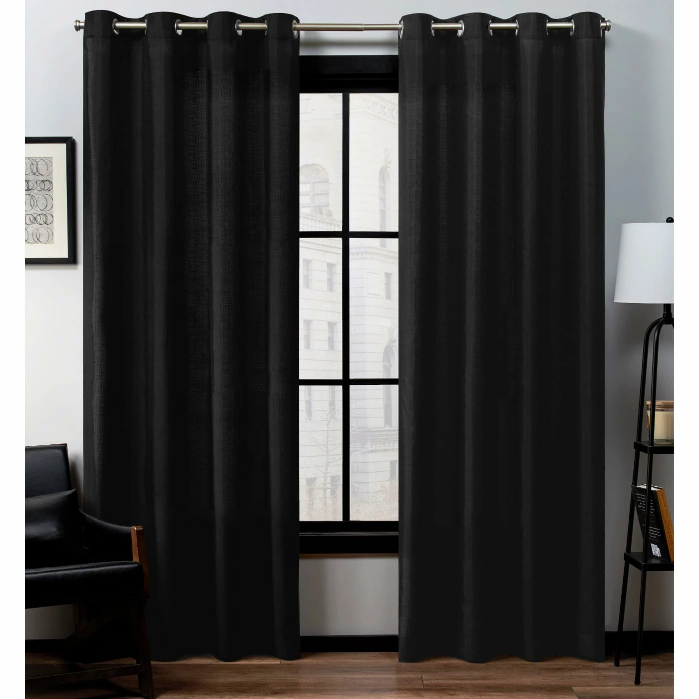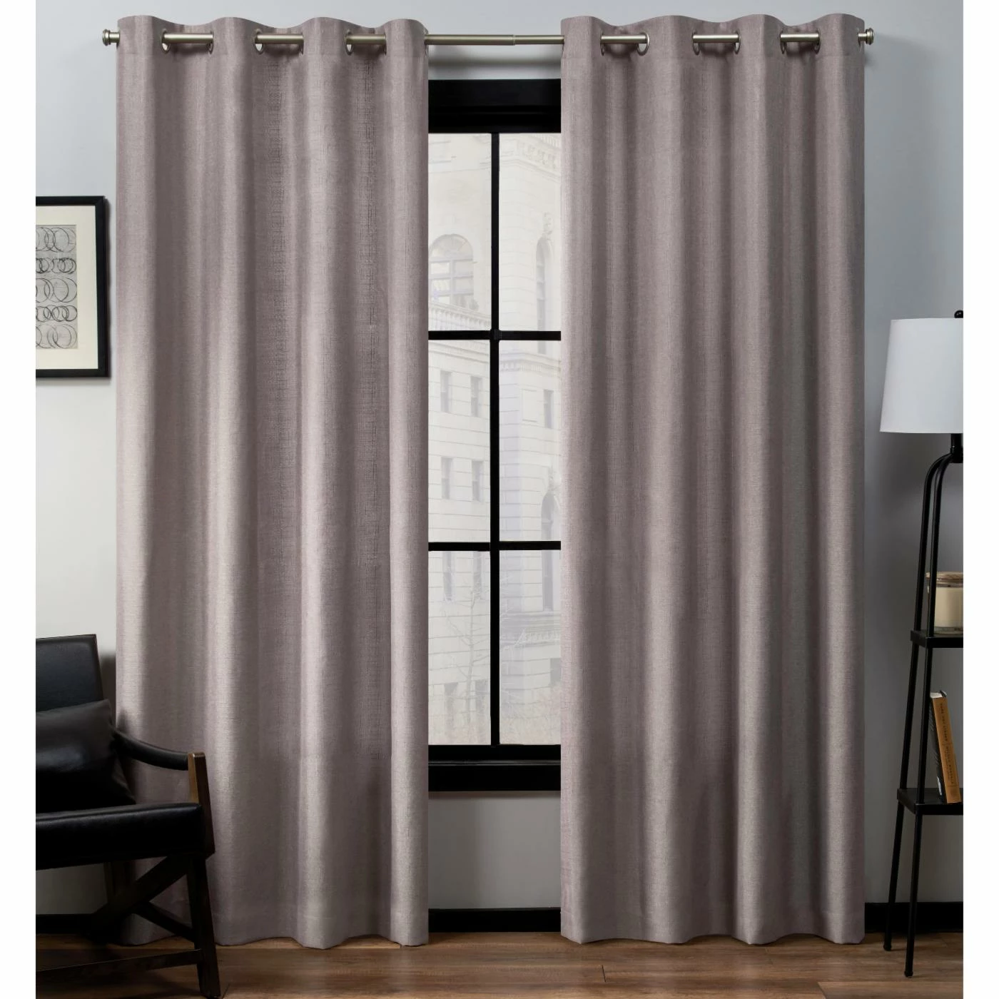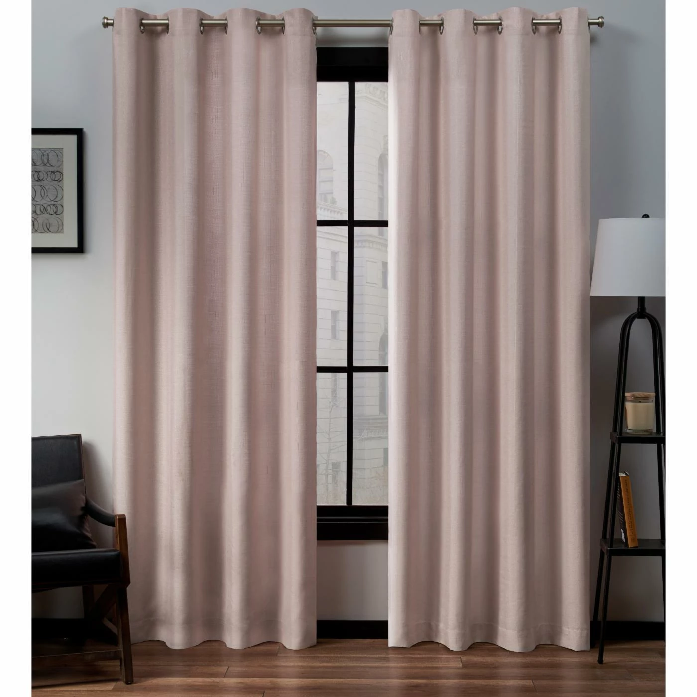 A solid linen design gives the Exclusive Home Loha Grommet Top Curtain Panel Pair a sophisticated look. Choose the available size and color that caters perfectly to your home. A grommet top design offers a clean profile and moves easily.