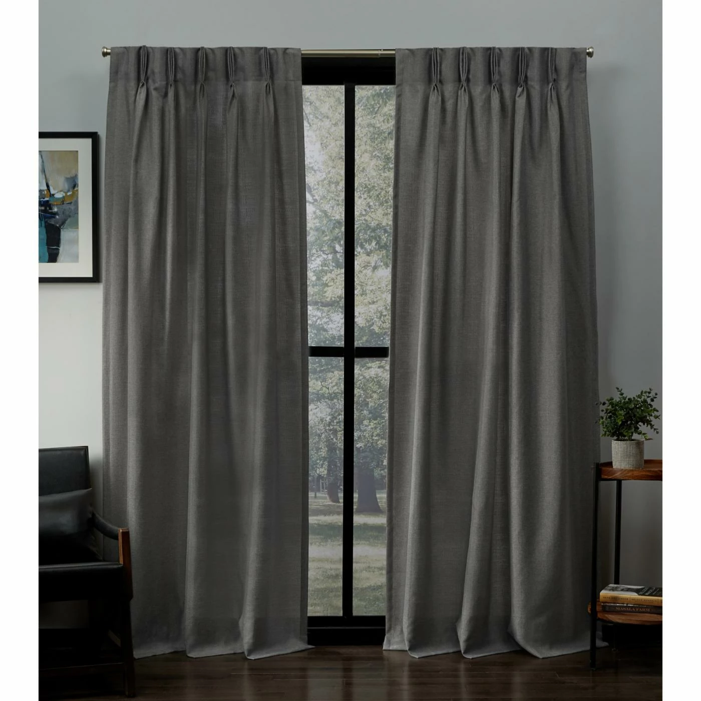 For a relaxed, tailored look the Exclusive Home Loha Pinch Pleat Curtain Panel Pair features crisp pleating and a linen look. This set of two curtain panels may be hung from the pinch pleats or tabs sewn into the back. Choose from the available solid color and size options.