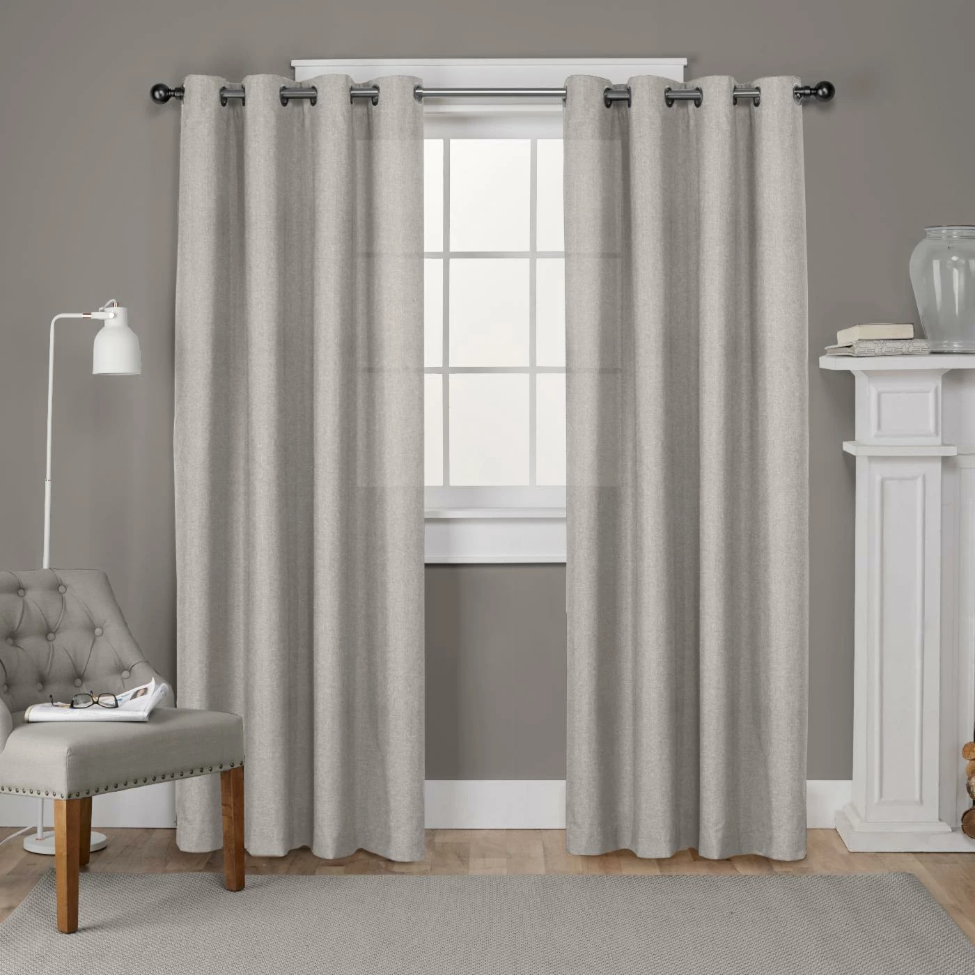 The Exclusive Home Loha Window Curtain Panel Pair boasts woven fabric that mutes exterior light to add a warm glow to any room. The neutral hue lets these drapes complement a variety of furnishings.