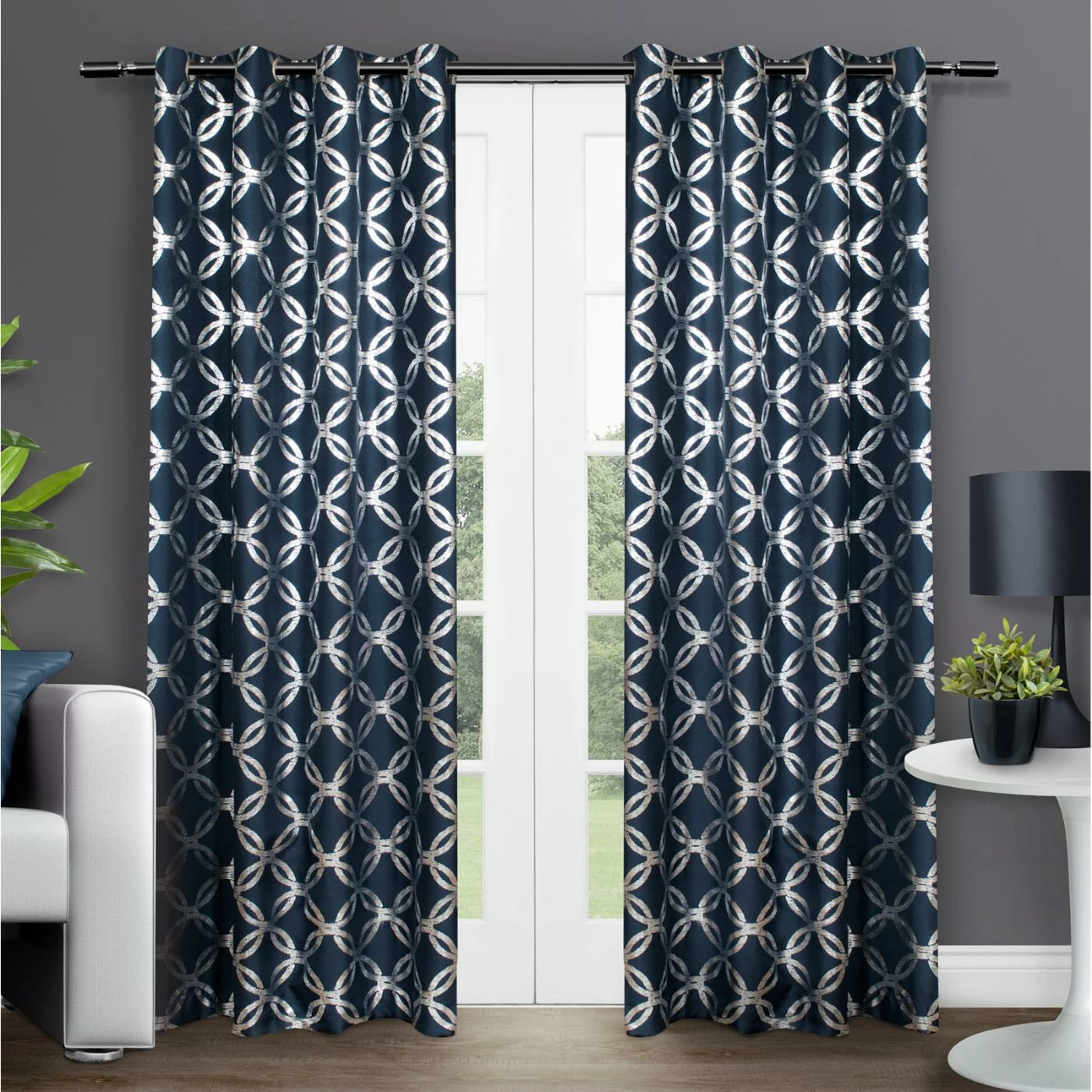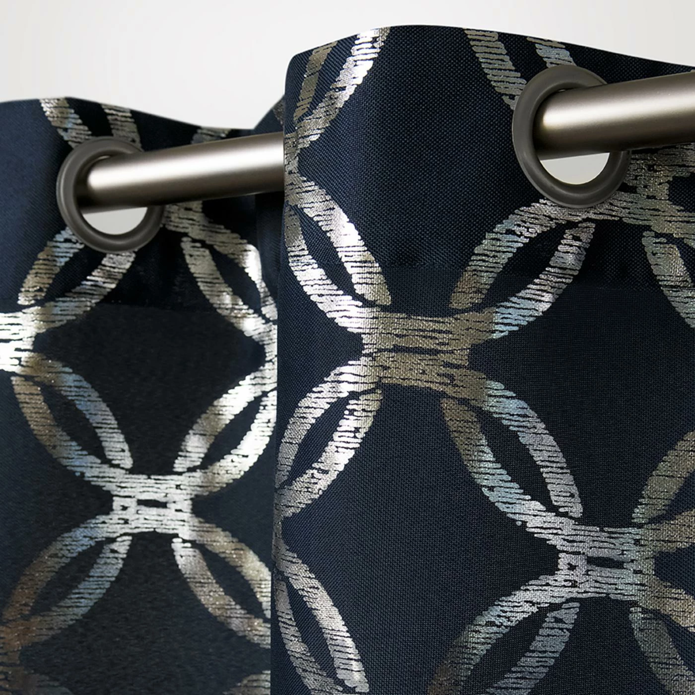 Featuring a grommet top, the Exclusive Home Modo Grommet Curtain Panel Pair hangs proudly in any room. The geometric lattice pattern shines in your choice of available color, for an overlapping affect. These polyester curtains easily carry over from season to season and come in your choice of available size.