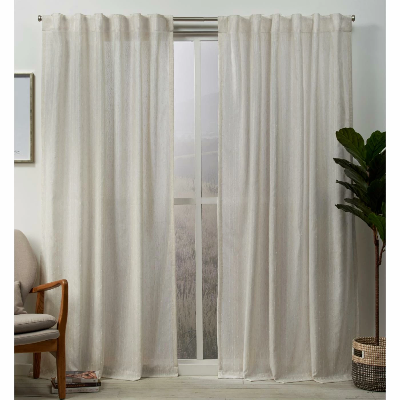 The Exclusive Home Muskota Teardrop Hidden Tab Top Curtain Panel Pair boasts a teardrop slub yarn embellishment for a touch of modern elegance. For a beautiful drape, these two curtain panels hang from either hidden tabs sewn into the back or the more classic rod pocket design. Choose from the available solid color and smart size options.