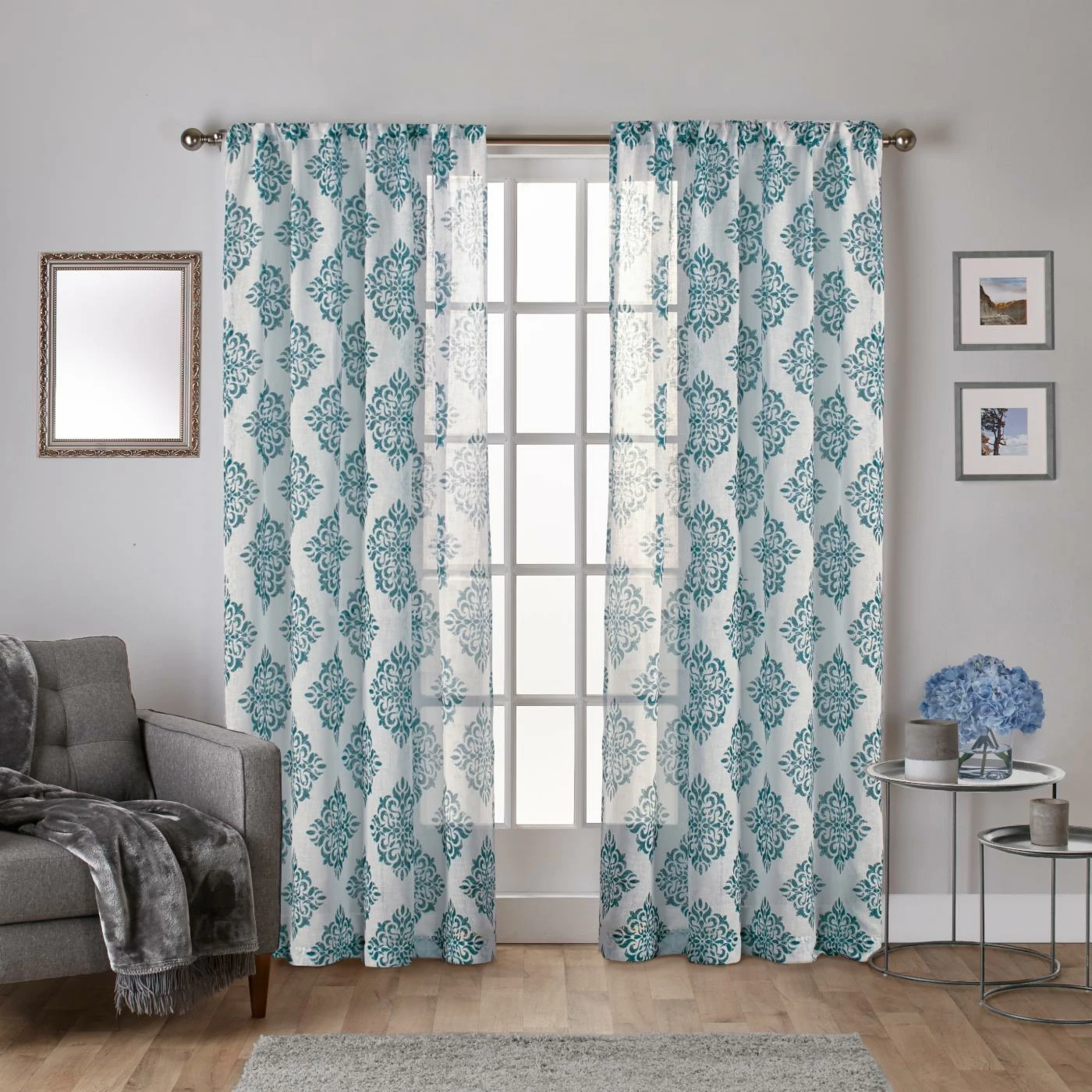 The Exclusive Home Nagano Belgian Linen Medallion Rod Pocket Curtain Panel Pair is sheer in construction and eye-catching in print. This set’s two panels are crafted with polyester fabric, and printed with a floral damask pattern. Choose from the available print color options. A hidden rod pocket at the top of each panel slides easily over your existing curtain rod. Spot clean or hand wash the panels to keep them pristine, and press them with a low-heat iron. The rod and hanging hardware are not included.