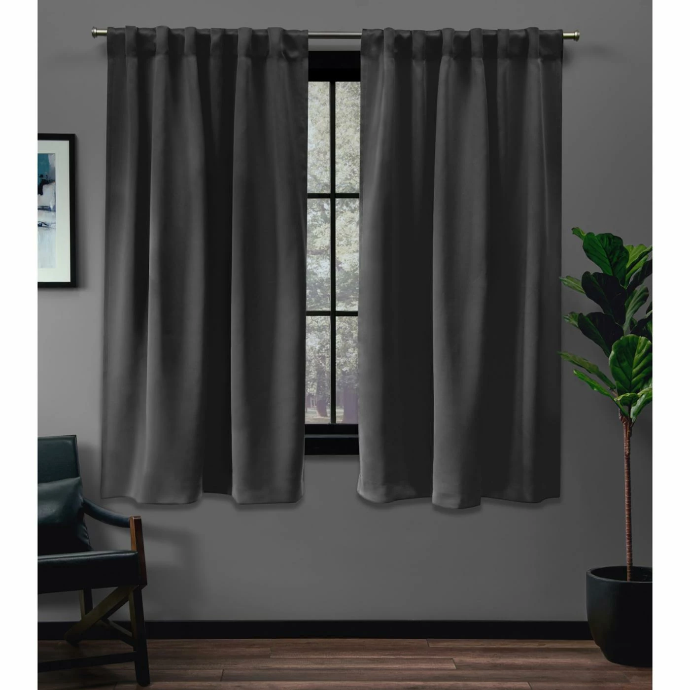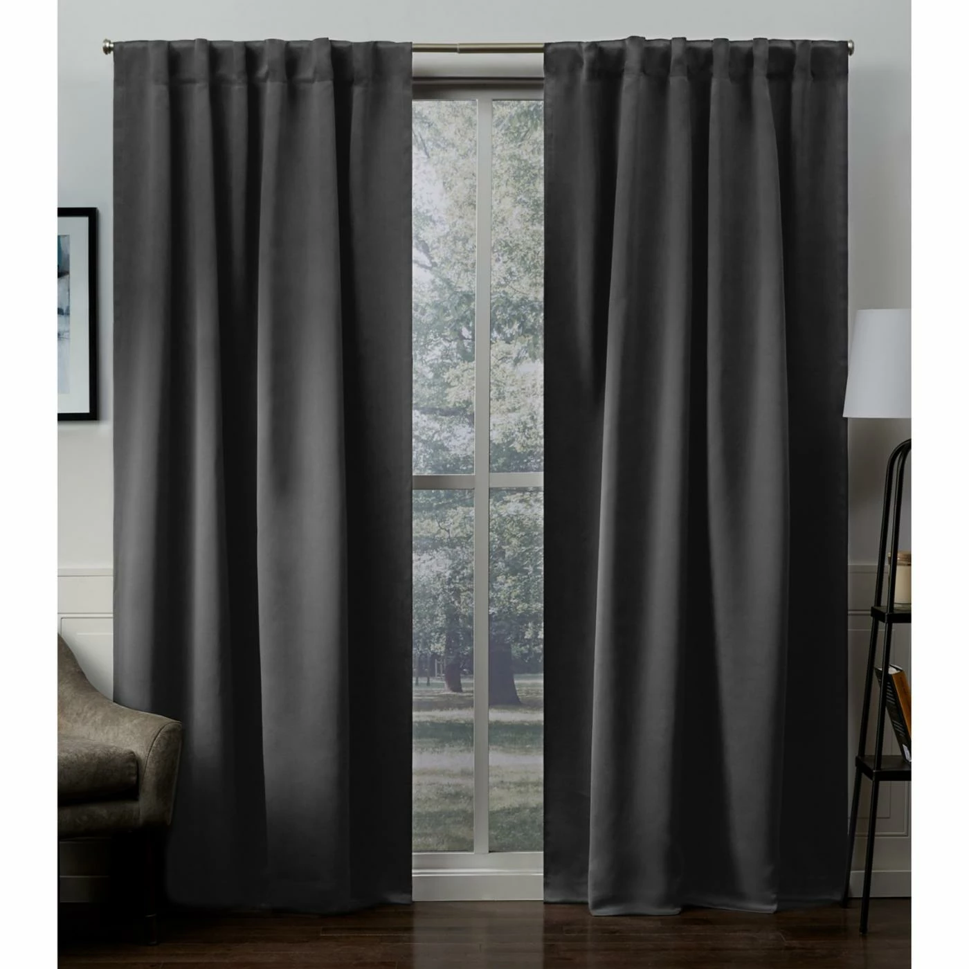 The linen-look Exclusive Home Sateen Blackout Hidden Tab Curtain Panel Pair boasts a rich sateen finish. For a versatile drape, these two curtain panels may be hung from either concealed tabs sewn into the back or the more classic rod pocket design. Choose from the available solid color and smart size options.