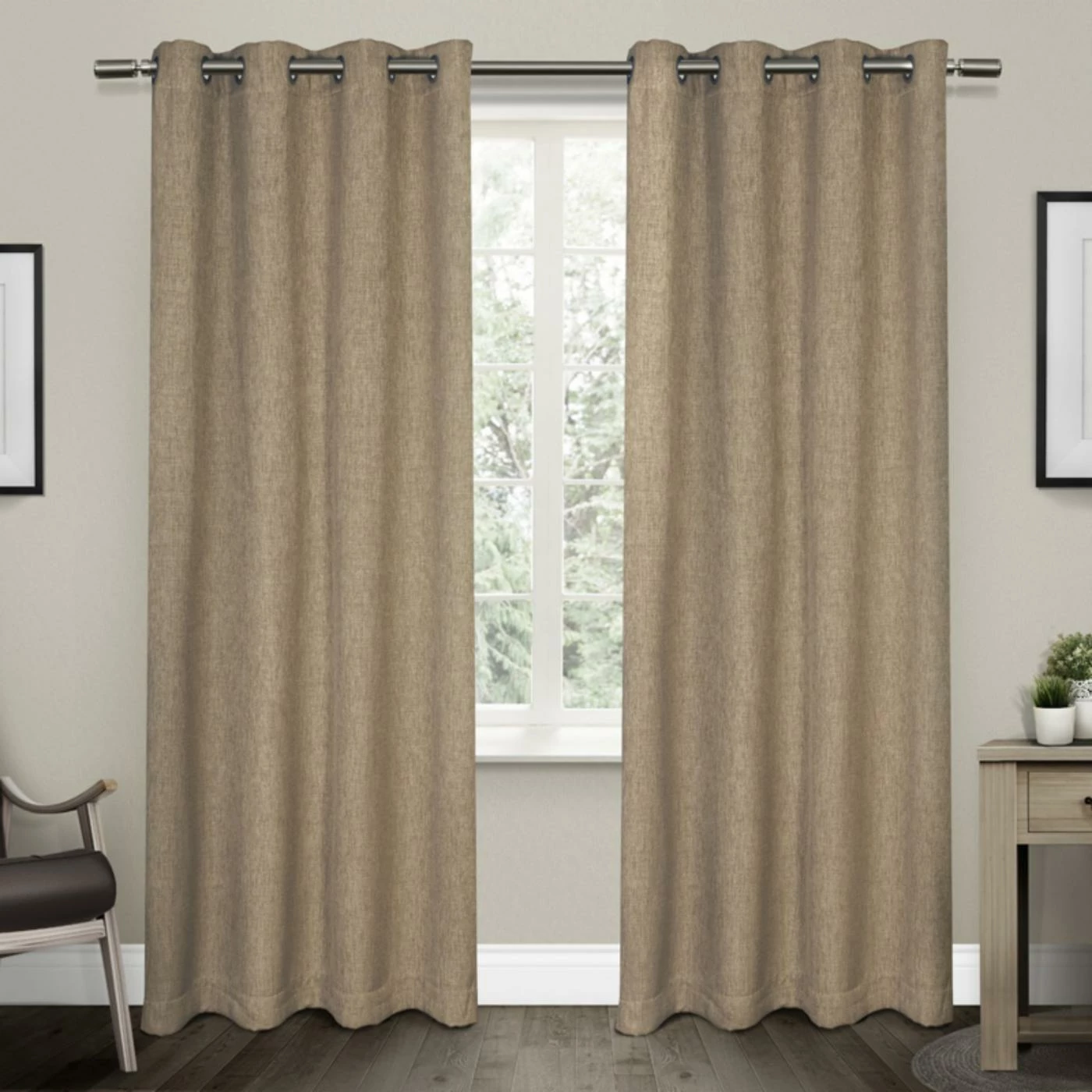 Pull the Exclusive Home Vesta Heavy Top Curtain Panel Pair closed to keep out the light to set the mood for a mid-afternoon nap or keep your television screen glare-free. Able to block up to 99.9 percent of light, these curtain panels are interwoven with Thermax and Lightblock, the latest in UV-blocking fiber technologies. The curtains are finished with matte silver grommets that allow for effortless hanging.
