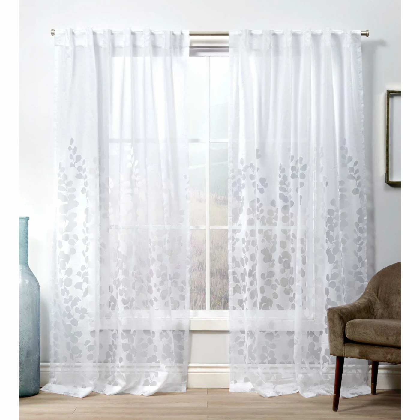 Displayed alone or layered with a second set of curtains, the Exclusive Home Wilshire Burnout Sheer Hidden Tab Top Curtain Panel Pair creates a finished look in any space. These curtains are made of cotton-polyester fabric and decorated with a burnout leaf pattern. Each panel is equipped with seven tabs and a rod pocket for hanging. Hand wash this set in cold water for best care.