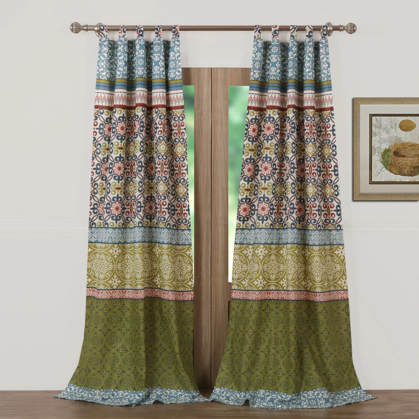 Inspire some tranquility in your bedroom, living room, or guest room thanks to the Greenland Home Fashions Shangri-La Panel Pair. This set of curtain panels boasts a number of different, muted colors and patterns for a patchwork look that provide a peaceful backdrop to any dΓ©cor. The panels feature deep rod pockets and come with a sun-shading backing. Curtain tie-backs are included. Panels are machine-washable.