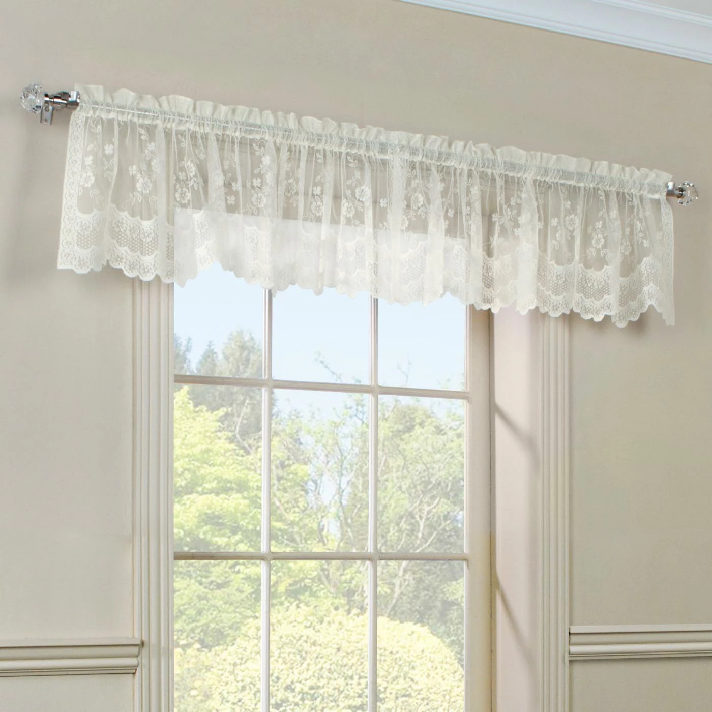 Fairytale charm is always apropos with the Habitat Mona Lisa Tailored Lace Panel. Scalloped edges and a finely engineered jacquard lace let in warm sunshine while creating a genteel, elegant atmosphere. Selvedge sides keep the presentation light and flowing. Hangs with rod pockets.