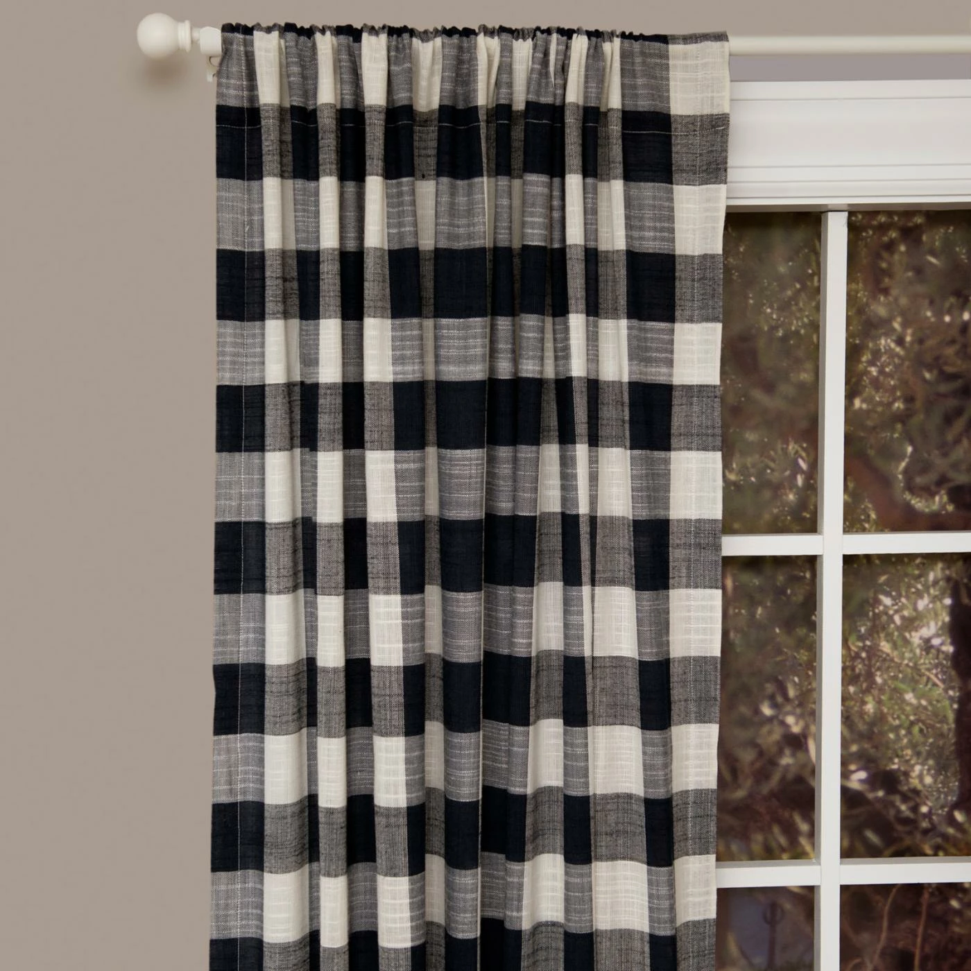The Heritage Lace Buffalo Check Curtain Panel brings preppy airiness to your windows with its navy blue plaid pattern. This cotton curtain panel is conveniently machine washable with a cross stitch pattern as the theme. It’s equipped with a 1.5-inch rod pocket and offered in the available sizes.