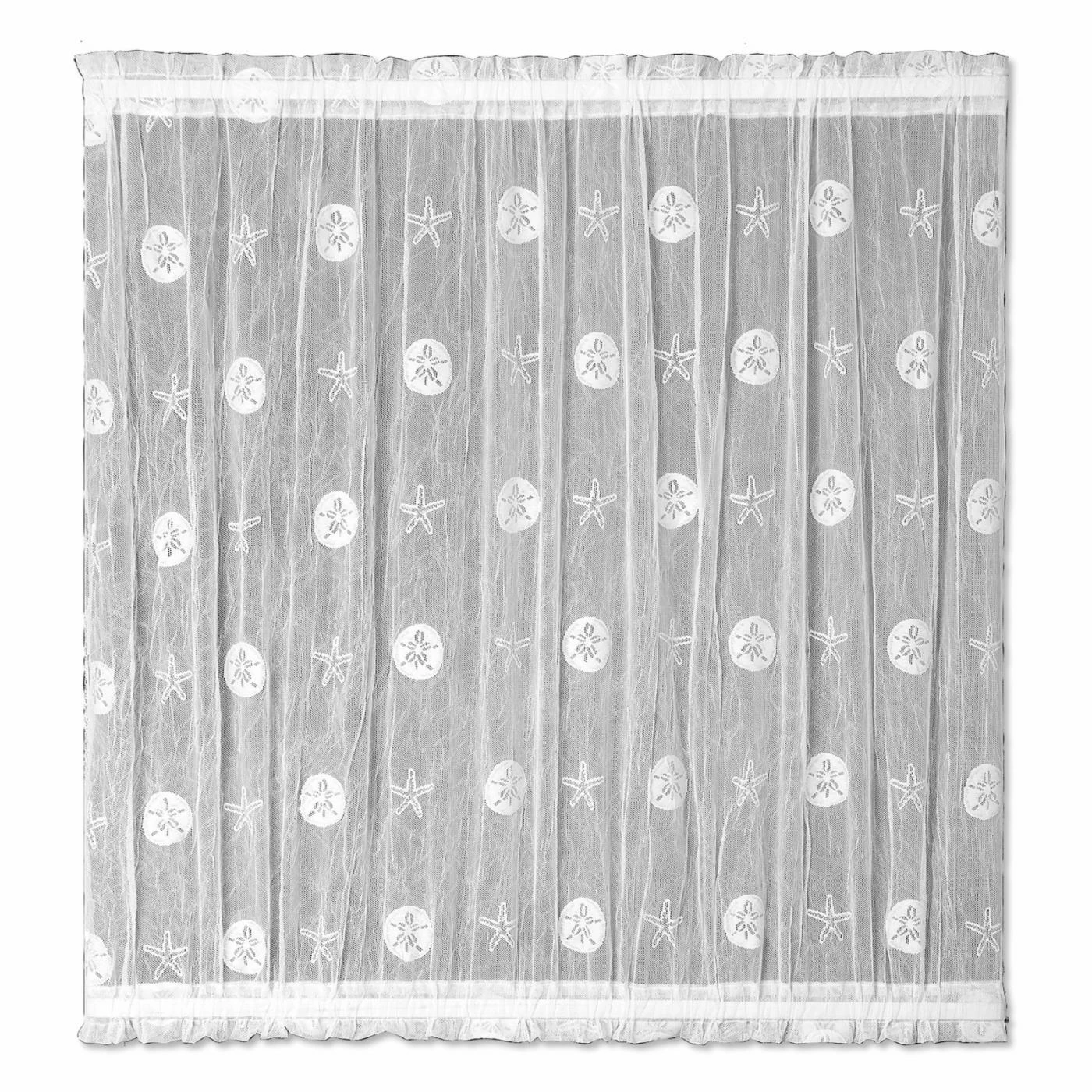 The Heritage Lace Sand Dollar Door Curtain Panel streams soft sunlight through your window through its delicate polyester lace work. This sheer curtain panel showcases a sand dollar and starfish print that conveys a beachy feel. It’s offered in the available size options.