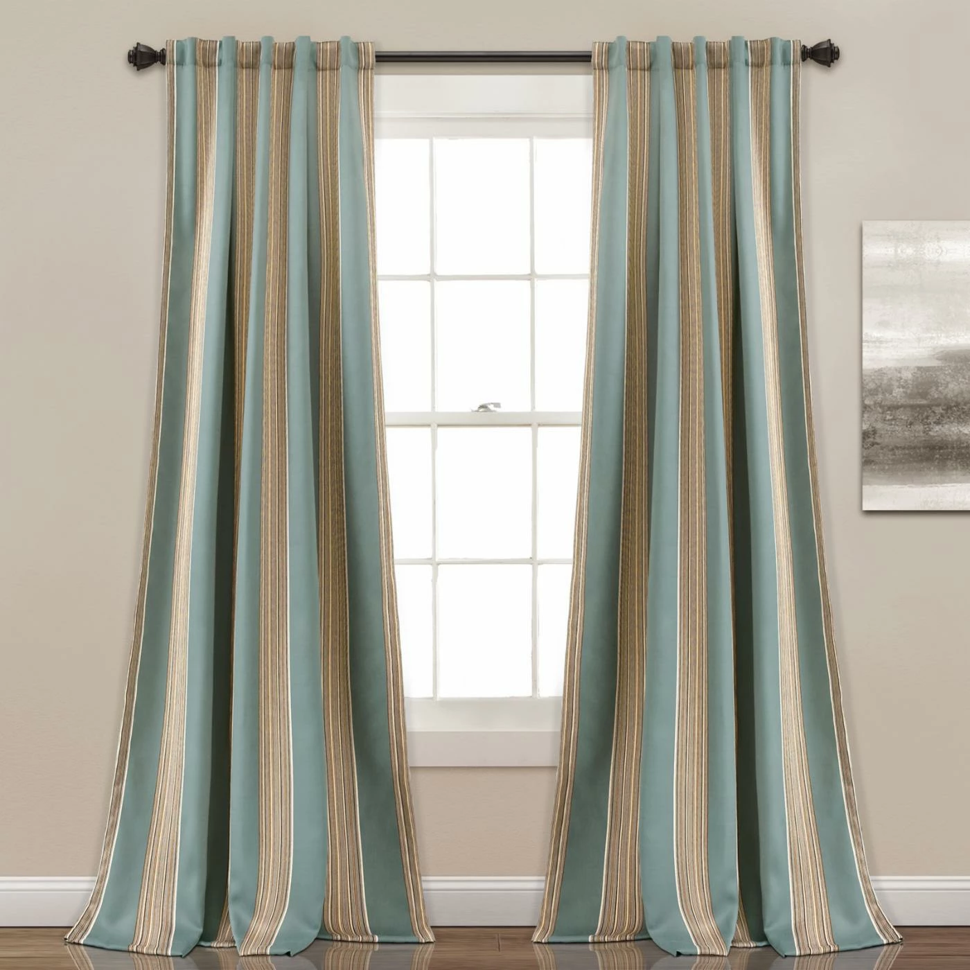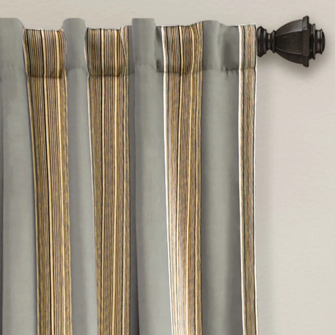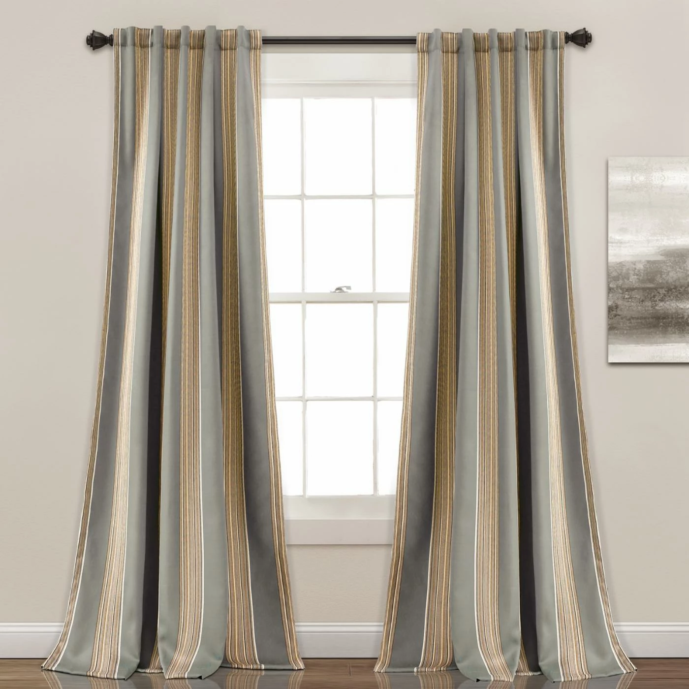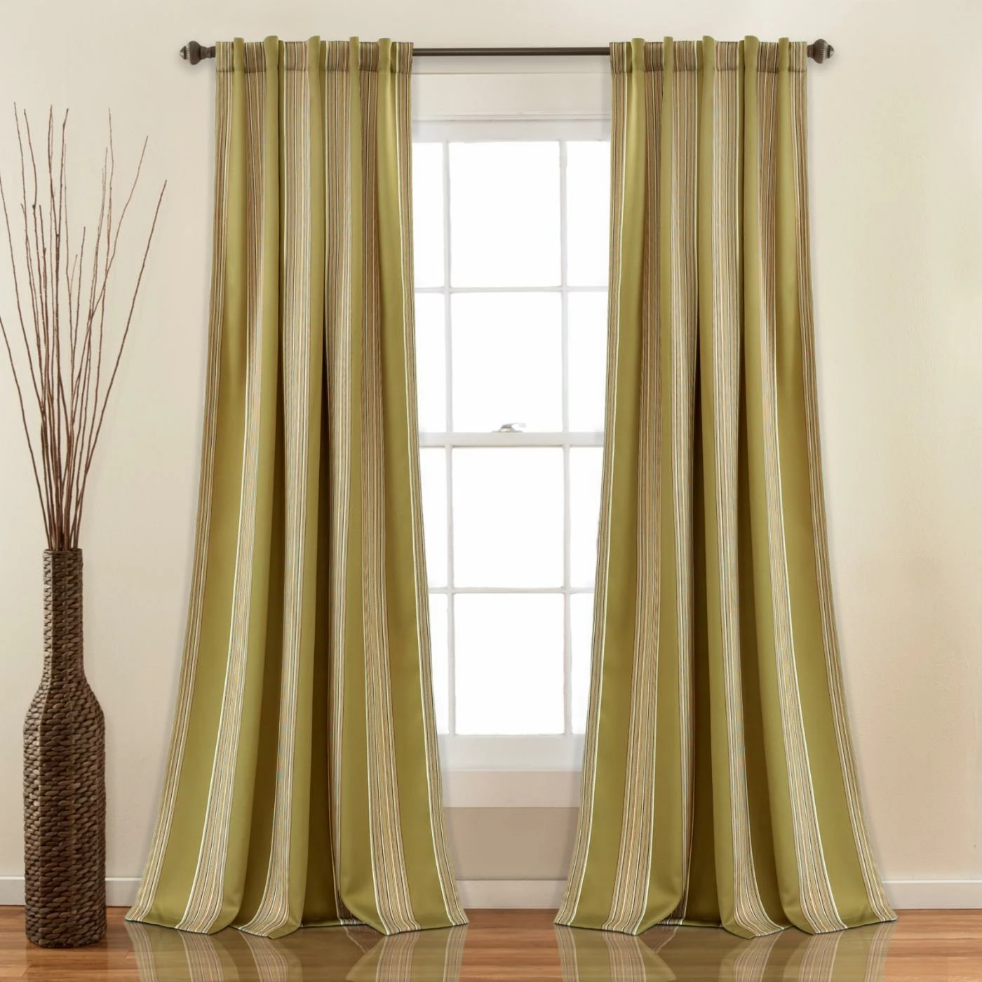 From its savvy stripes to its light-blocking design, the Julia Stripe Roome Darkening Window Curtain Set by Half Moon is a must-have for any room. Crafted of 100% polyester, these curtain panels feature a vertical stripe pattern with thin stripes between wider ones and comes in your choice of available color. The energy-efficient, light-blocking design is ideal for bedrooms, and each set includes two panels. Machine wash cold.
