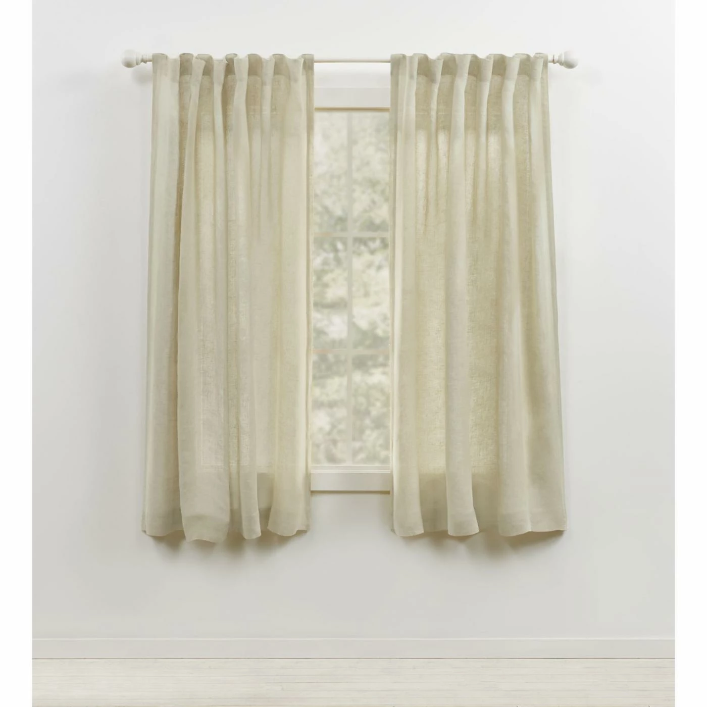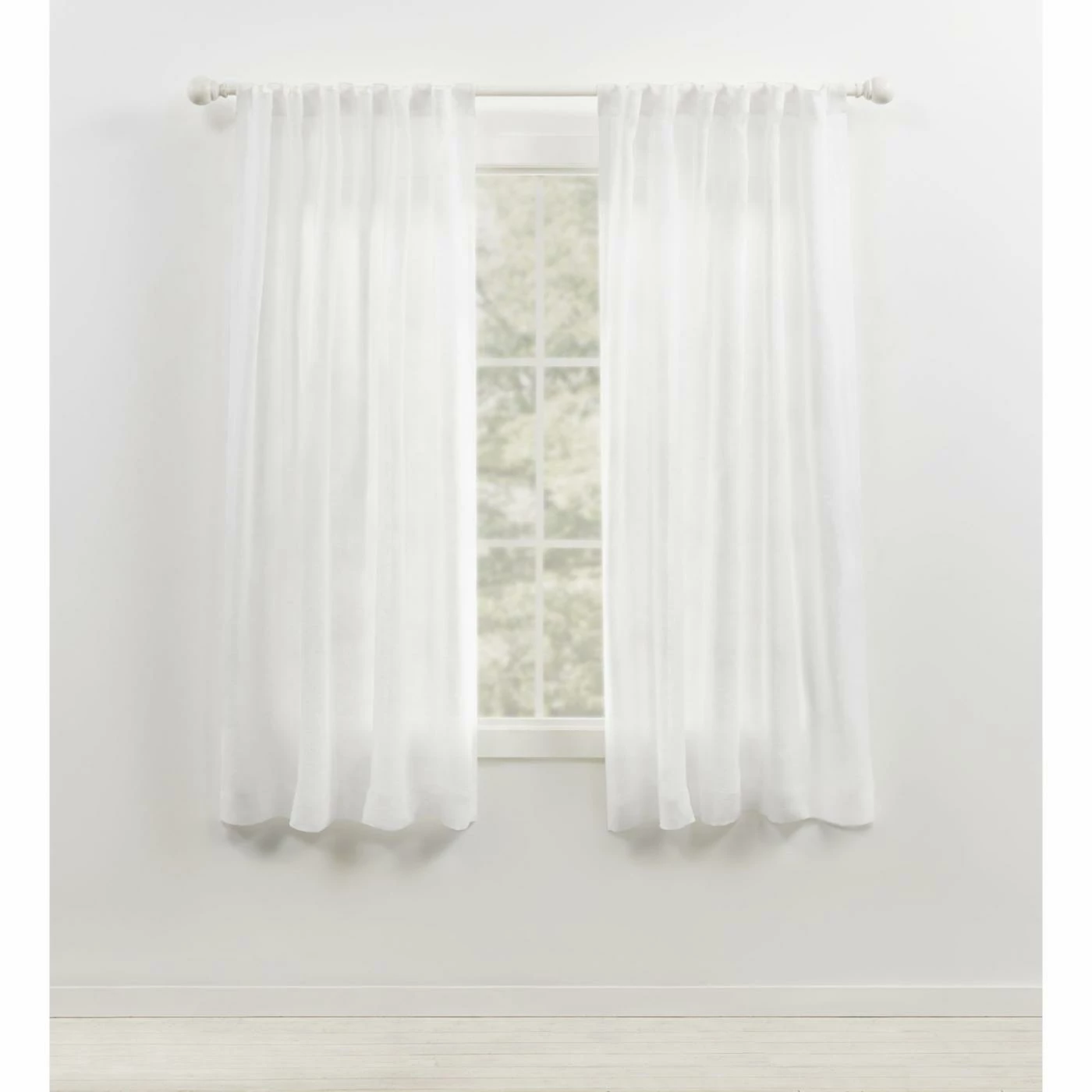 - Sheer tailored curtain with rod pocket and back tab