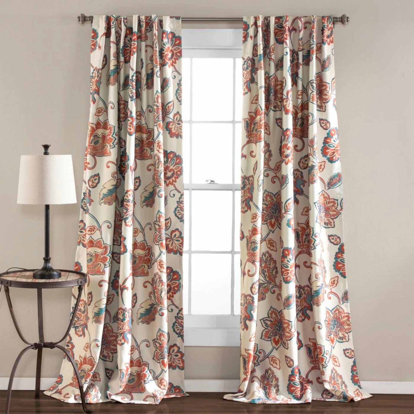 Wake up your bedroom or living room with this Lush Decor Aster Window Curtain Set. Over scaled flowers in a thoroughly contemporary orange, blue, and ivory palette set the tone. The set includes two curtain panels with a room darkening lining. The curtains are made of machine-washable polyester.