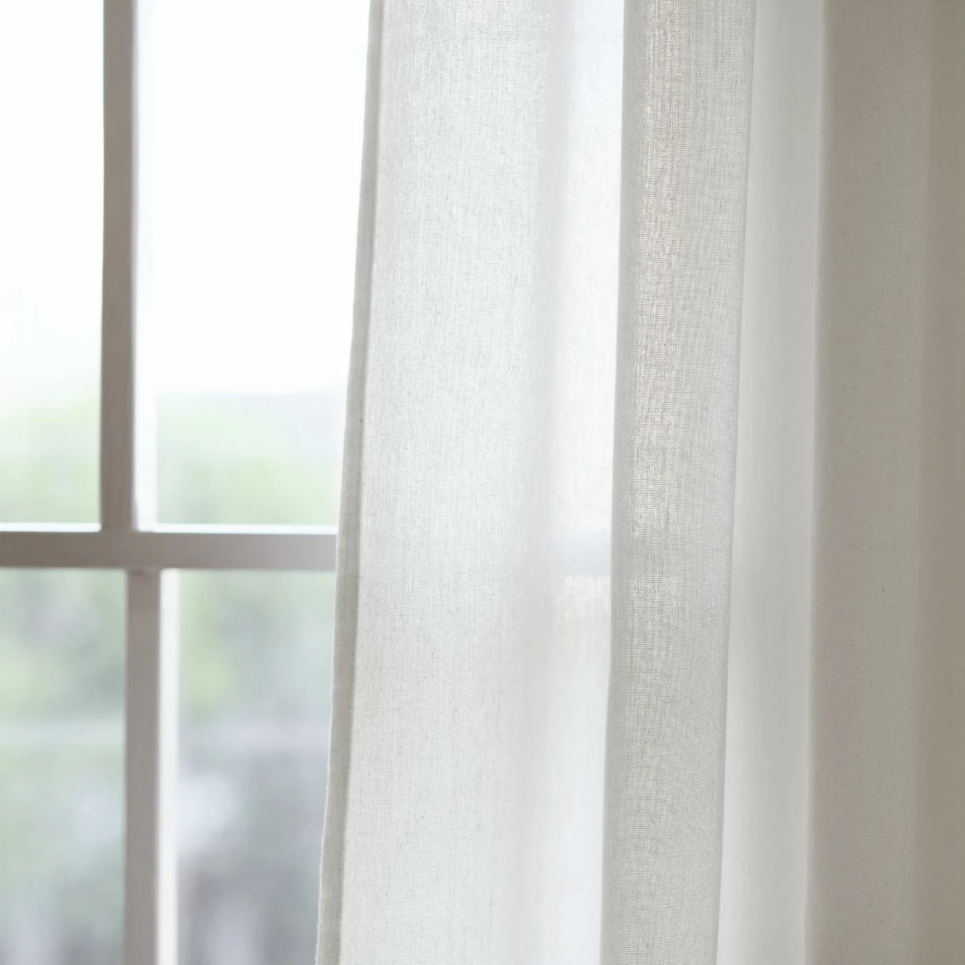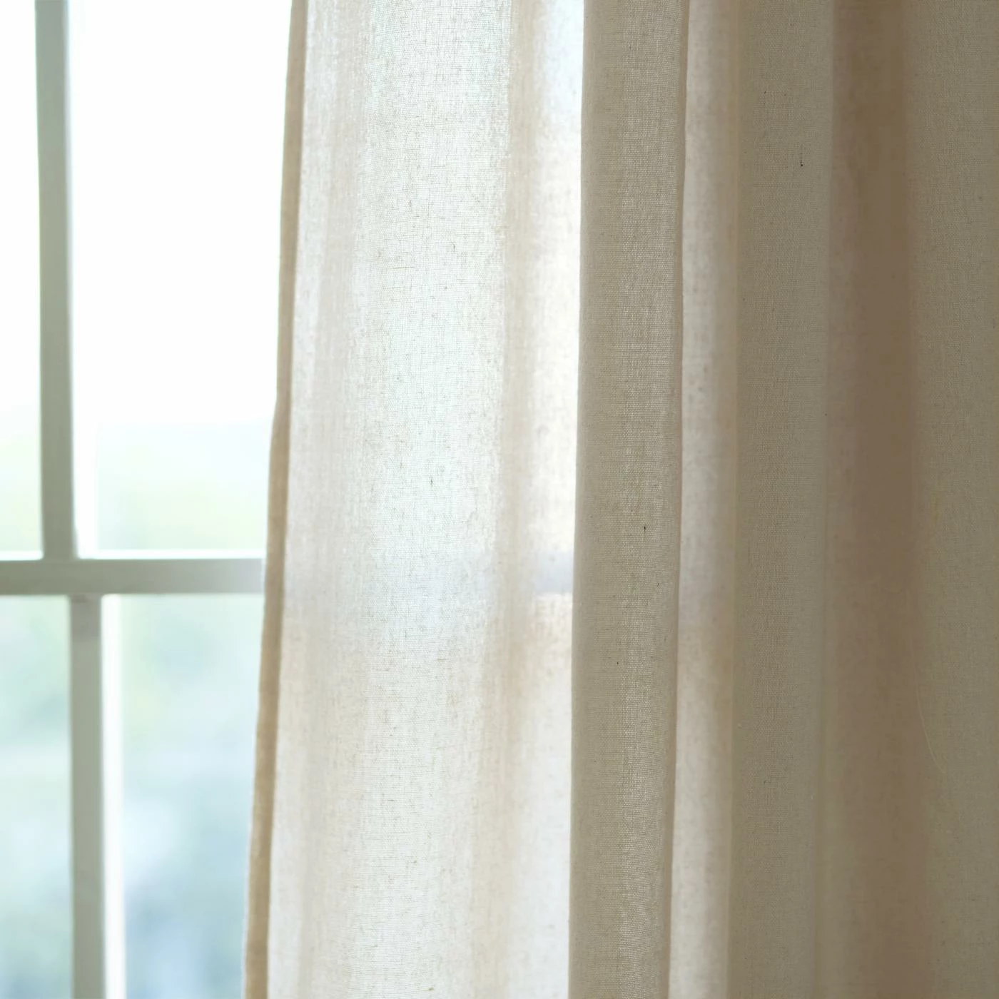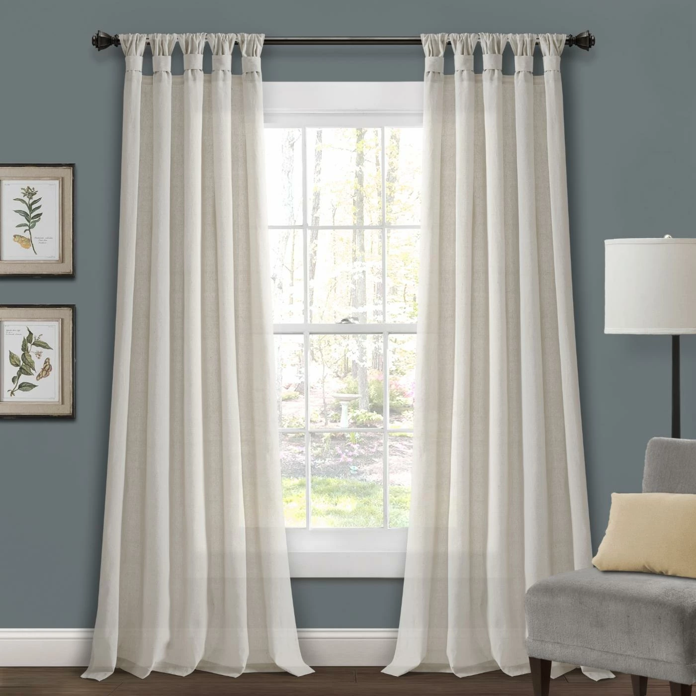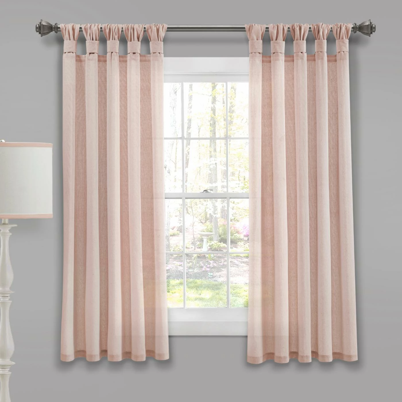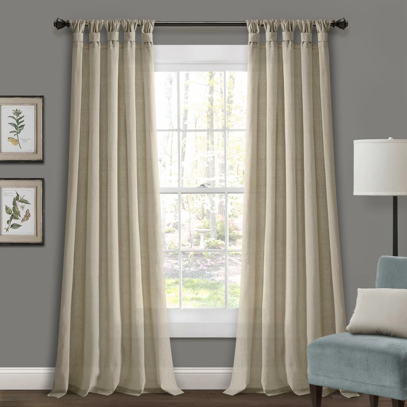 The Lush Decor Burlap Knotted Tab Panel Pair adds a finishing touch to your space. These curtain panels are made of a polyester-cotton-linen fabric blend that will softly filter light. Choose from the available solid color options to best coordinate with existing furniture and dΓ©cor. The knotted tabs add ruffled accents when the panels are installed on your curtain rod. For easy care, this set is machine washable.