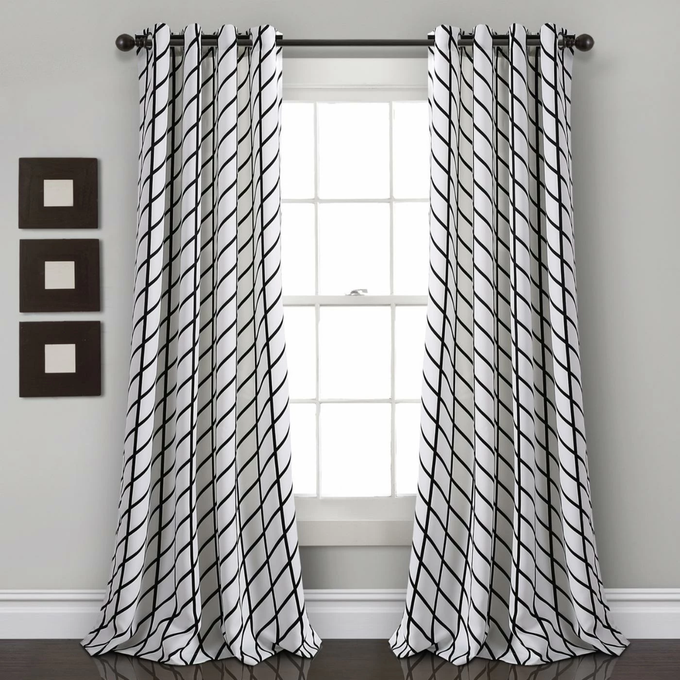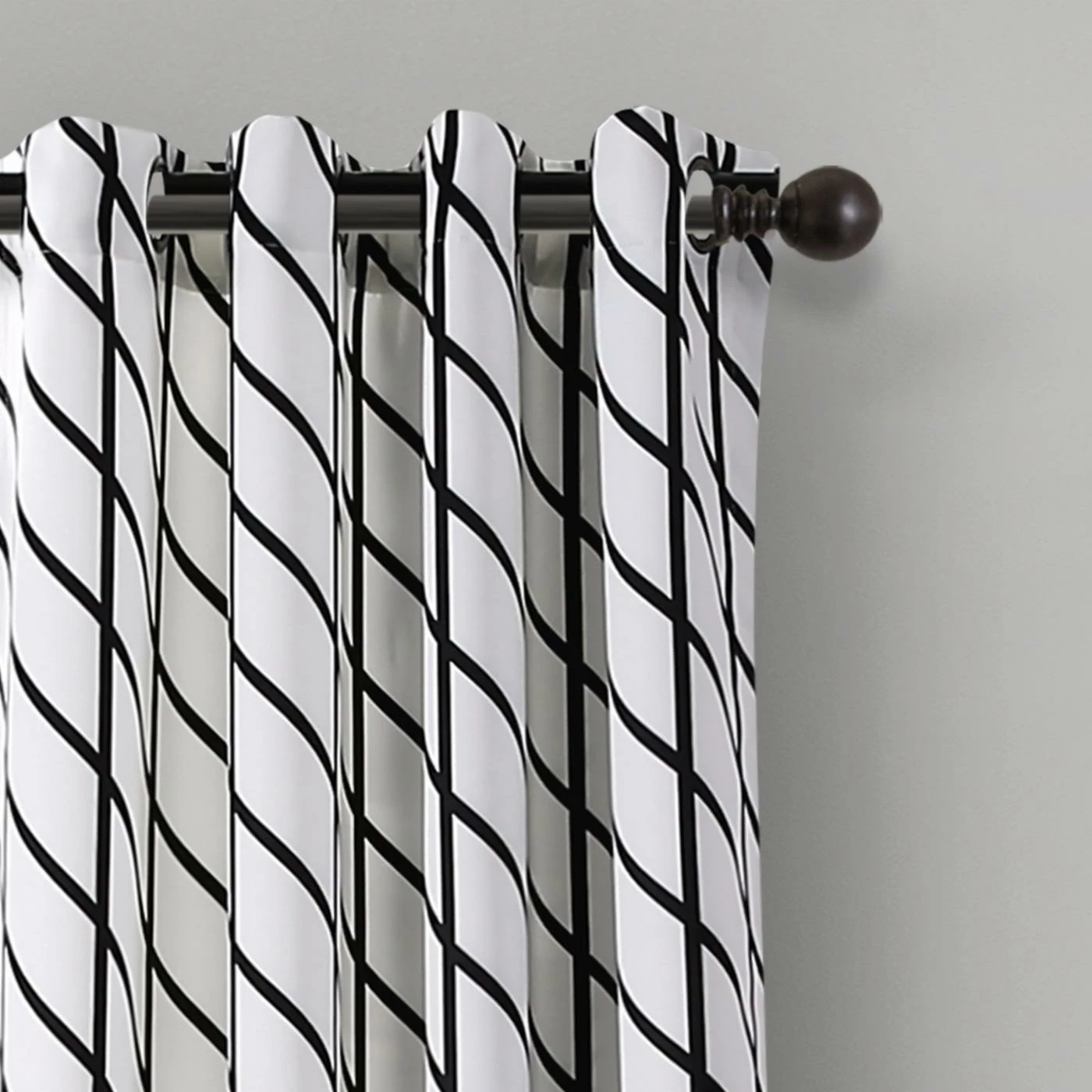 Get more out your curtains with the Lush Decor Feather Room Darkening Window Curtains. This black and white geometric pattern is printed on a light blocking polyester fabric. Hanging these panels is easy with the metal grommets. Care for this set by machine washing in cold water and hanging to dry.