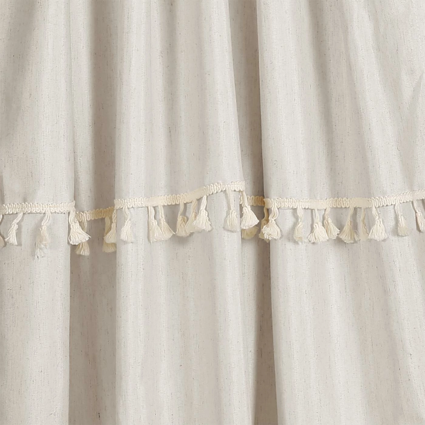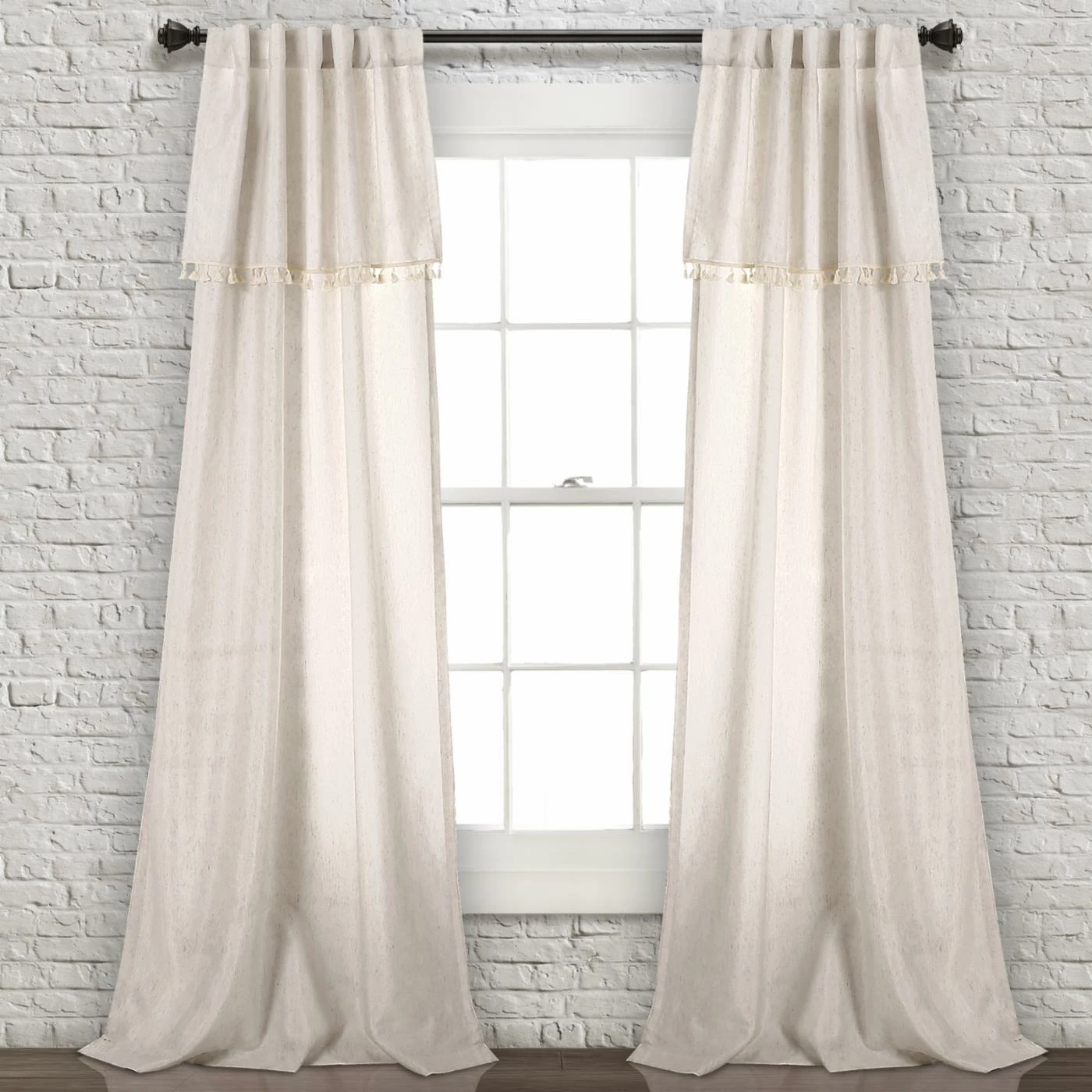 A row of tassels hangs from the top of the Lush Decor Ivy Tassel Curtain Panel Pair to add flair to the solid color. Made from a polyester blend, these curtains are machine washable for easy care.