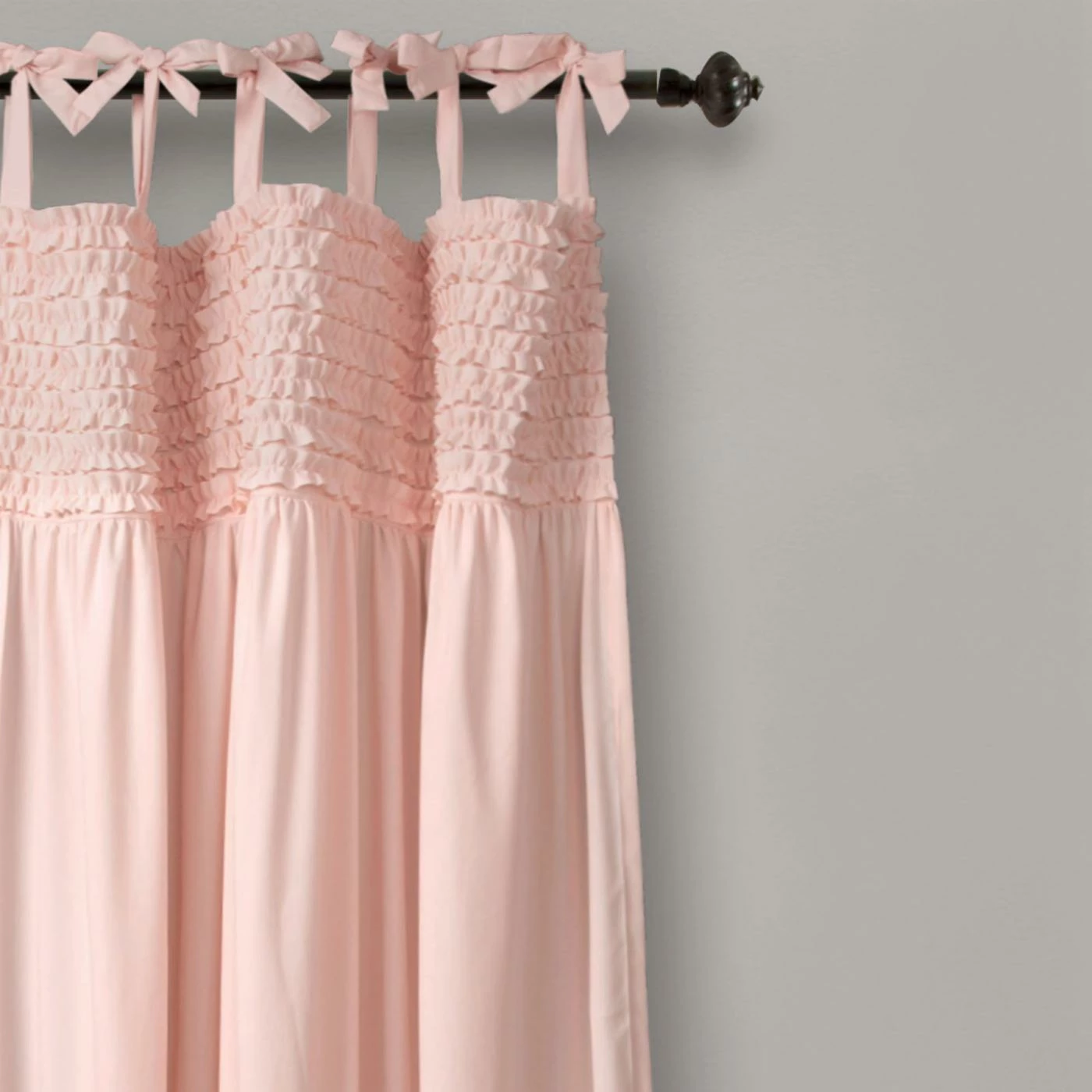 Add a sweet and delicate touch to your room with the Lush Decor Lydia Ruffle Curtain Panel Pair. The tie top makes it easy for anyone to put these panels up. With soft horizontal ruffles, these curtains bring an adorable touch to any living space.