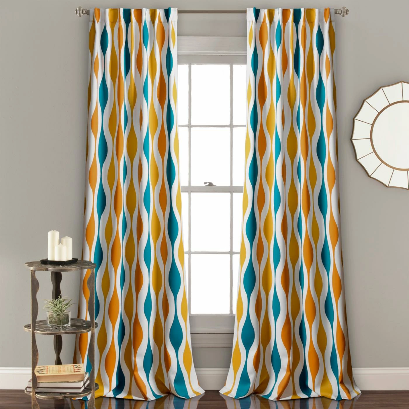 Let the Lush Decor Mid Century Room Darkening Window Curtains make a trendy statement in your home. The geometric pattern is printed on a light-filtering polyester fabric. The 3-inch back tab rod-pocket construction allows you multiple ways to hang this set. Care for these curtains by machine washing in cold water and tumble drying on low. Select from the available color options.